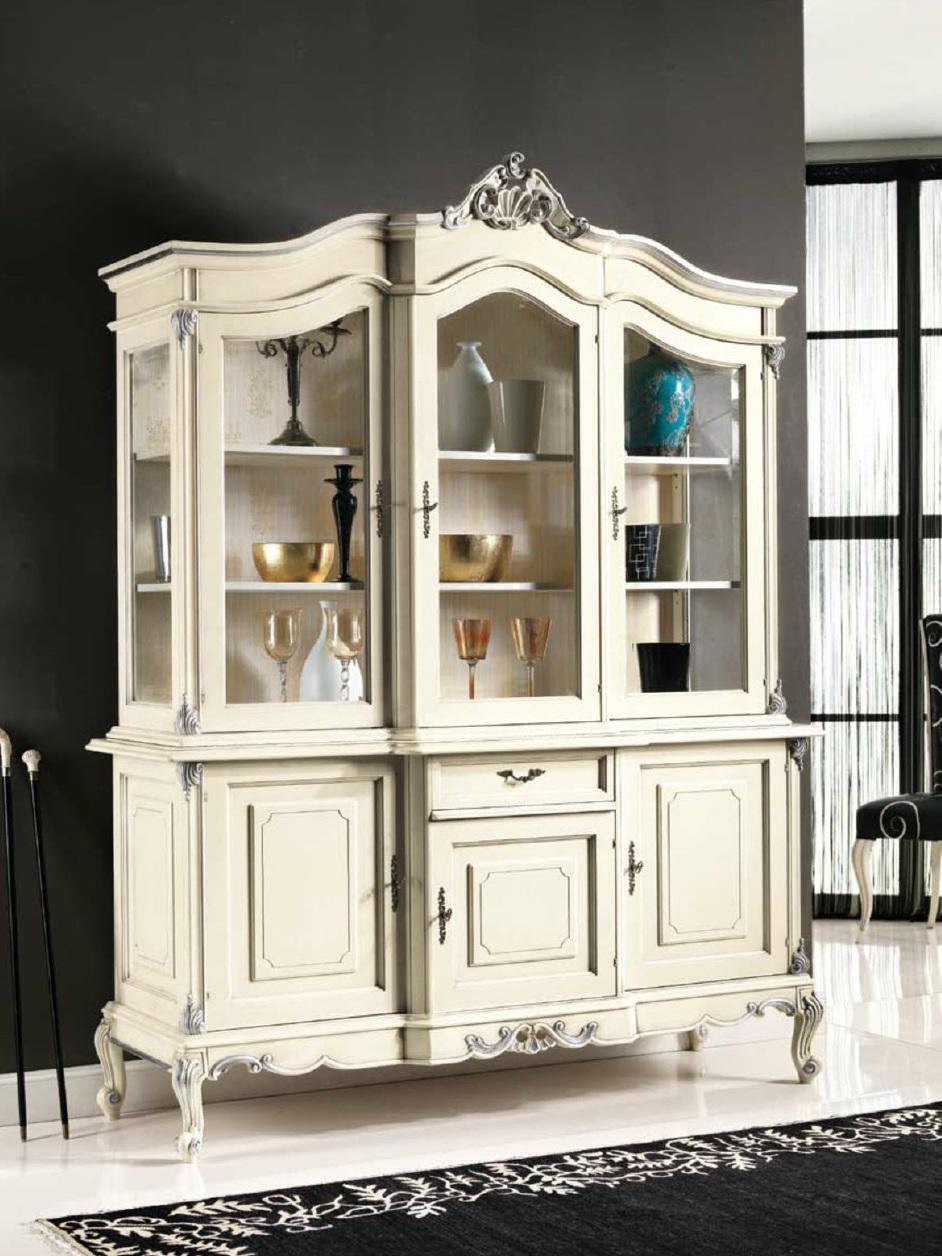 weiße Vitrine Italienische Luxus Möbel Vitrinen Anrichte Schrank Glas Schränke