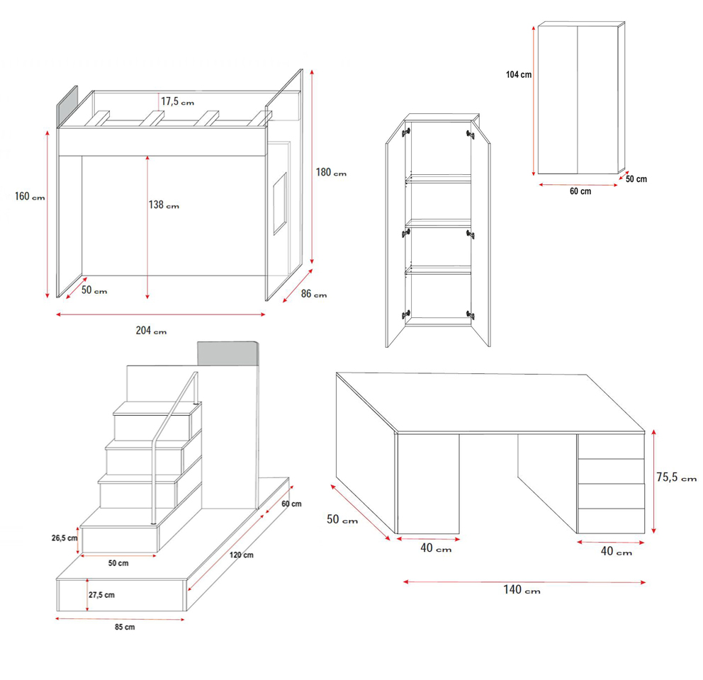 Etagenbett, Multifunktionsbett, hochwertige Möbel, modernes Design, Kinderbett, Holz