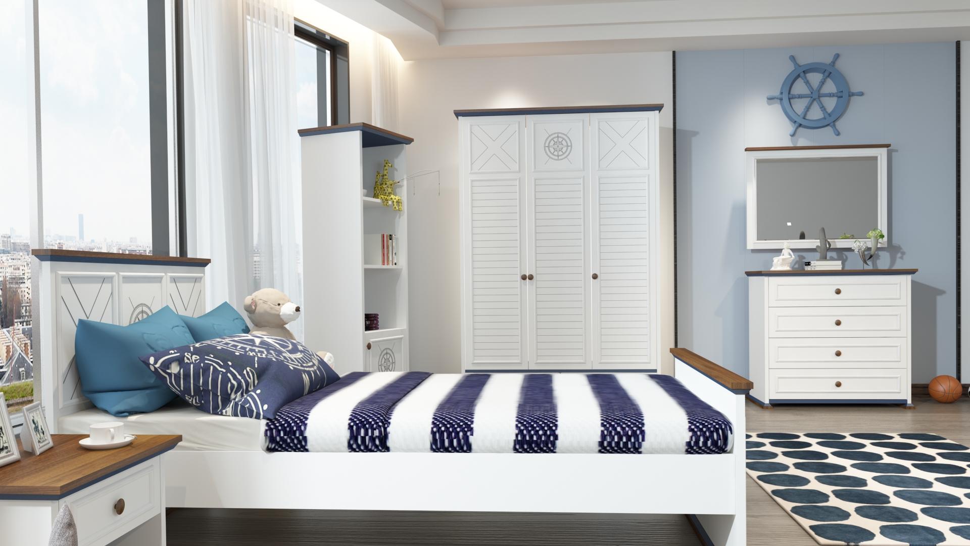 Schlafzimmermöbel-Set Bett mit Nachttisch, Kleiderschrank und Schreibtisch