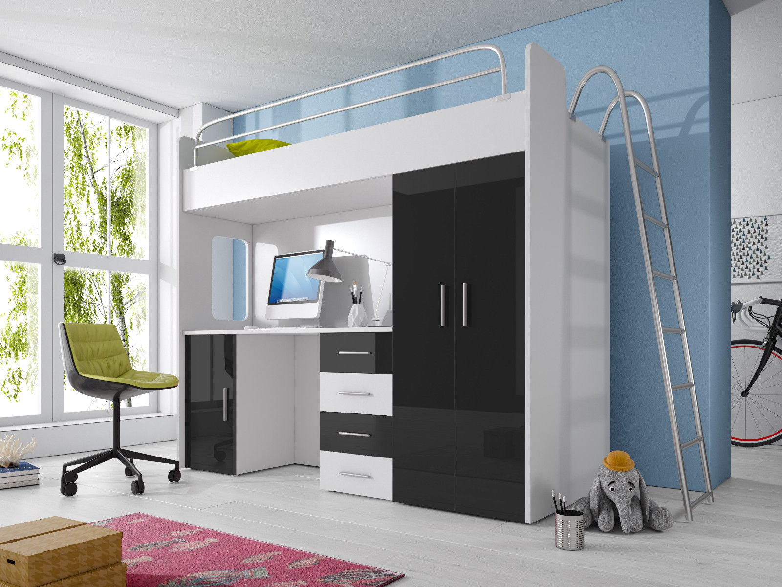 DOPPELSTOCKBETT STOCKBETT ETAGENBETT SCHREIBTISCH+KLEIDERSCHRANK-RAJ 4D SCHWARZ