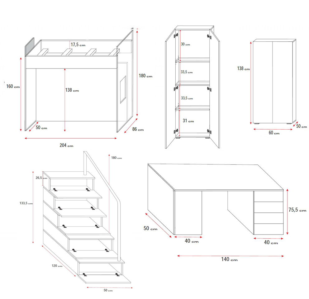 Kinderzimmer Doppelstockbett Weiß Tisch Schrank Multifunktion Etagen Hochbett