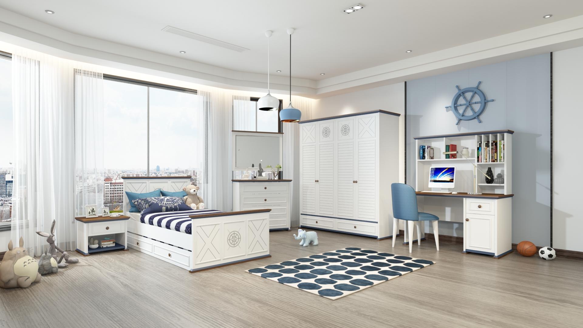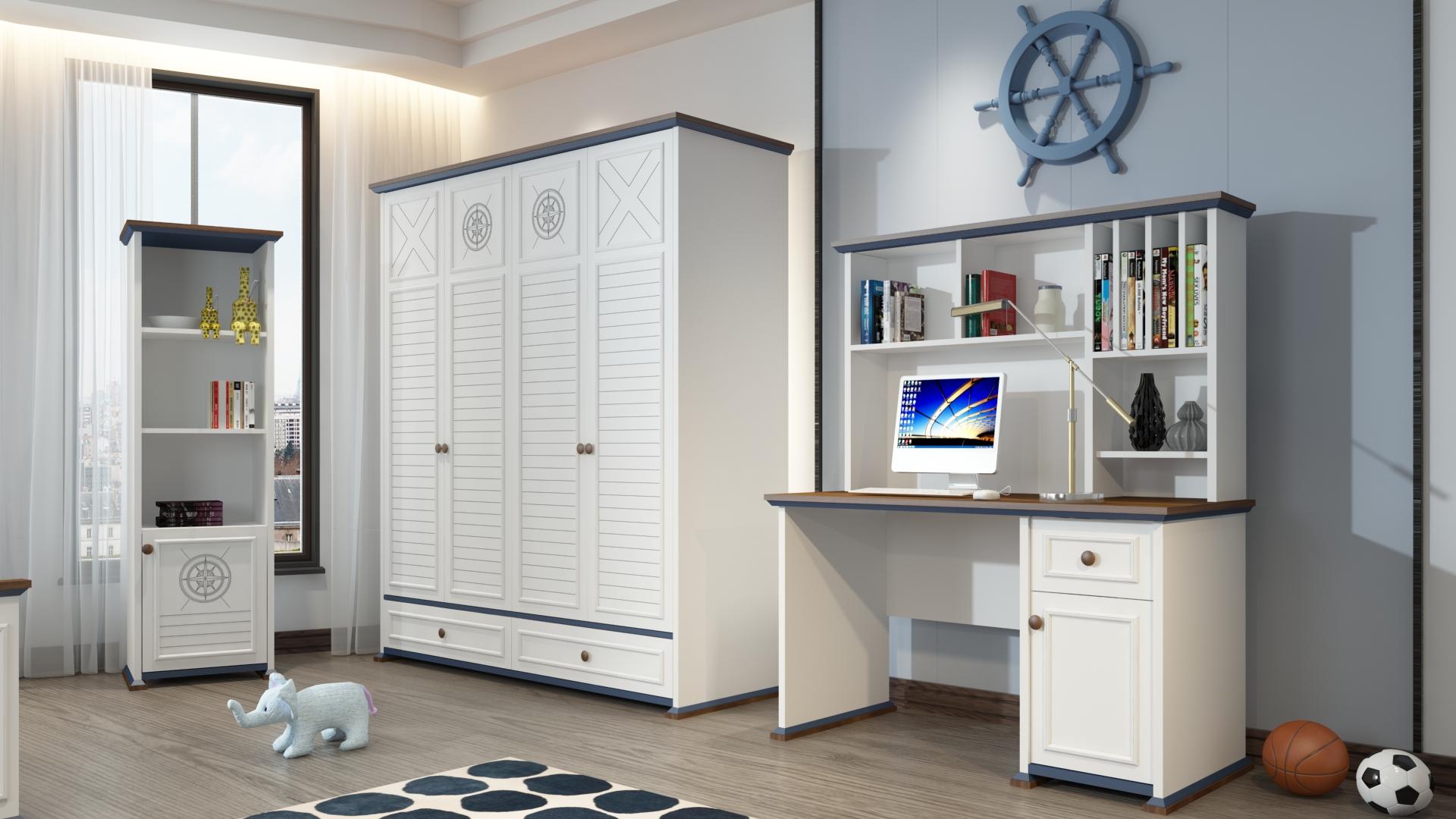 Schlafzimmermöbel-Set Bett mit Nachttisch, Kleiderschrank, Kommode und Schreibtisch, Möbelkomplettset für das Schlafzimmer