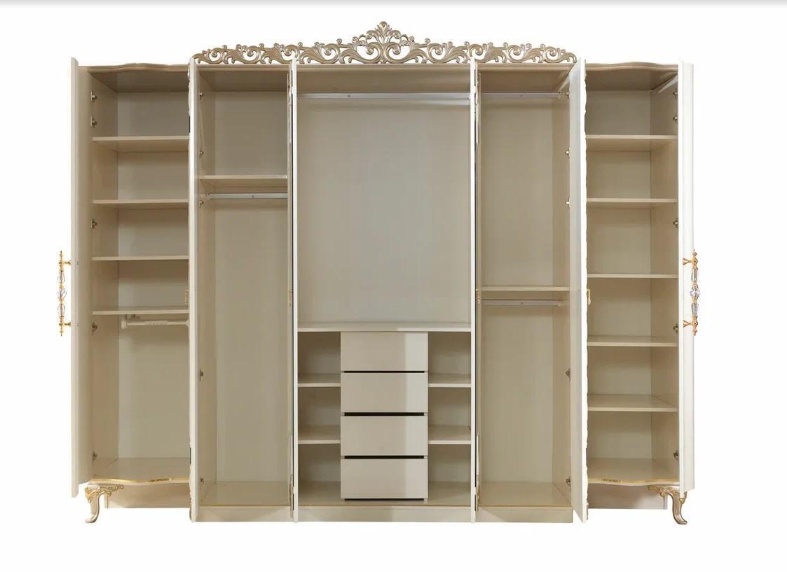 Entdecken Sie den Kleiderschrank Design Luxus Schrank Modern von XL Moebel für Ihr Schlafzimmer! Dieser luxuriöse Schrank besticht durch seine eleganten geschwungenen Formen und hochwertige Holzverarbeitung. Mit einer Größe von ca. 300 x 75 x 250 cm bietet er ausreichend Stauraum für Ihre Kleidung und Accessoires. Der Schrank ist in der Farbe wie abgebildet erhältlich und wird zum Blickfang in Ihrem Schlafzimmer. Holen Sie sich noch heute dieses moderne Möbelstück und verleihen Sie Ihrem Zuhause einen Hauch von Luxus!