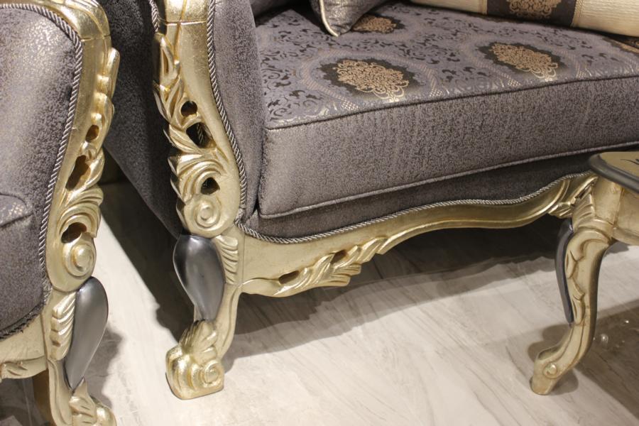 Entdecken Sie das luxuriöse und stilvolle Sofa für Ihr Wohnzimmer! Dieses moderne Möbelstück besticht durch seine edle Verarbeitung aus Holz und hochwertigem Textil. Mit eleganten geschwungenen Formen und filigranen Schnitzereien wird dieses Sofa zu einem wahren Blickfang in Ihrem Zuhause. Die Maße betragen ca. 218 x 87 x 120 cm - perfekt für gemütliche Abende allein oder mit Ihren Liebsten. Die Farbe entspricht der Abbildung, aber auf Anfrage sind auch andere Farben erhältlich. Holen Sie sich jetzt dieses neue, edle Wohnzimmermöbel und verleihen Sie Ihrem Wohnzimmer eine einzigartige Note!