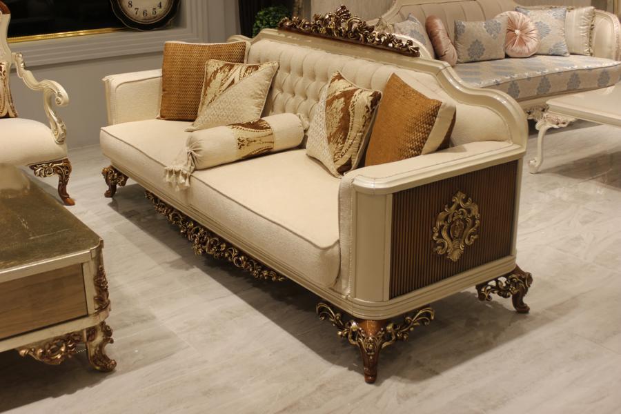 Entdecken Sie die zeitlose Eleganz des Luxus 3-Sitzer Sofas von XL Moebel! Dieses elegante Möbelstück verleiht Ihrem Wohnzimmer eine Hauch von Raffinesse und Stil. Hergestellt aus hochwertigem Holz und Textil in Beige, fügt sich das Sofa harmonisch in jedes Ambiente ein. Die geschwungenen Formen und die filigranen Details verleihen dem Sofa eine edle Note. Mit Maßen von ca. 240 x 66 x 125 cm bietet das 3-Sitzer Sofa ausreichend Platz zum Entspannen und Genießen. Die klassische Farbe Beige passt perfekt zu verschiedenen Einrichtungsstilen und kann auf Anfrage auch in anderen Farben erhältlich sein. Bringen Sie mit diesem exquisiten Sofa Luxus in Ihr Zuhause und lassen Sie sich von seiner Schönheit verzaubern. Erwerben Sie noch heute ein Stück zeitlose Eleganz für Ihr Wohnzimmer!