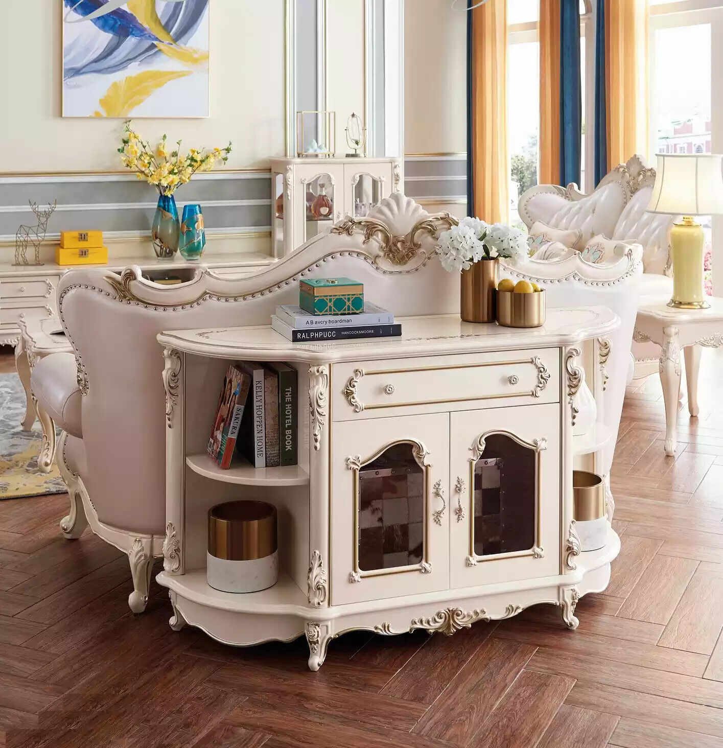 Entdecken Sie das klassische Sideboard für Ihr Wohnzimmer von XL Moebel! Dieses elegante Möbelstück besticht durch seine geschwungenen Formen und filigranen Schnitzereien. Hergestellt aus edlem Holz in der Farbe wie abgebildet, fügt sich das Sideboard harmonisch in Ihre Inneneinrichtung ein. Mit Maßen von ca. 125 x 45 x 86,1 cm bietet es ausreichend Stauraum und verleiht Ihrem Zuhause eine zeitlose Eleganz. Ein Must-Have für Liebhaber von Barock, Rokoko und anderen klassischen Stilen. Holen Sie sich jetzt dieses Schmuckstück nach Hause!