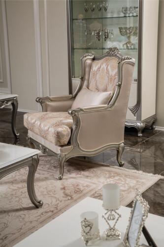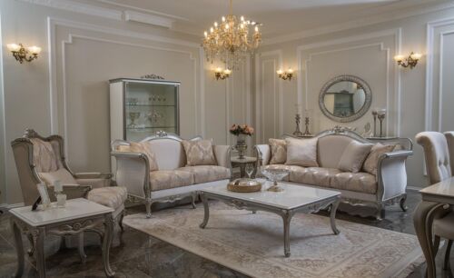 Erwecken Sie Ihr Wohnzimmer mit dieser eleganten 5-teiligen Sofagarnitur zum Leben! Die klassische Möbelkollektion von XL Moebel bietet Ihnen zeitlose Stücke in verschiedenen Stilen, von Barock bis Louis XVI. Jedes Stück ist aus edlem Holz gefertigt und in einer Vielzahl von Farben erhältlich – von Burgunderrot über Schokolade bis hin zu Anthrazit. Das Set besteht aus einem komfortablen 3-Sitzer Sofa, einem gemütlichen 2-Sitzer Sofa, einem stilvollen Sessel, einem geräumigen Couchtisch und einem praktischen Beistelltisch. Die geschwungenen Formen und filigranen Schnitzereien verleihen Ihrem Zuhause einen Hauch von Eleganz. Die Maße sind wie folgt: - Sofa 3 Sitzer: ca. 210 x 80 x 107 cm - Sofa 2 Sitzer: ca. 160 x 80 x 107 cm - Sessel: ca. 80 x 70 x 112 cm - Couchtisch: ca. 120 x 90 x 45 cm - Beistelltisch: ca. 55 x 55 x 55 cm Lassen Sie sich von der Farbe wie abgebildet begeistern und genießen Sie die Gemütlichkeit dieser Sofagarnitur aus hochwertigem Holz. Bringen Sie mit XL Moebel klassischen Stil in Ihr Zuhause!