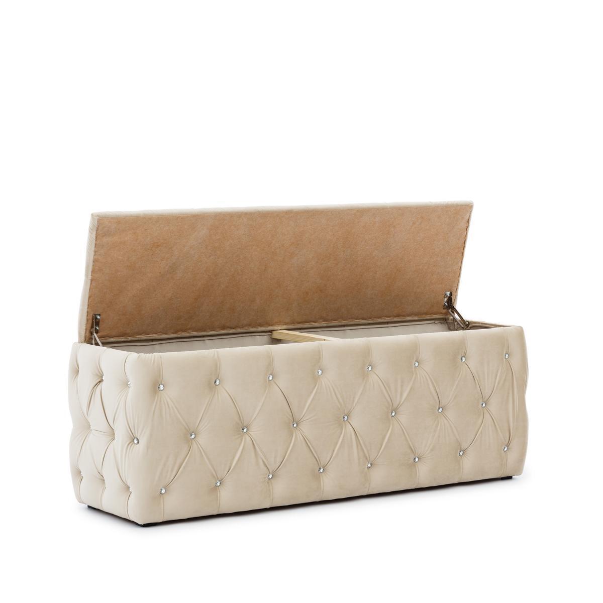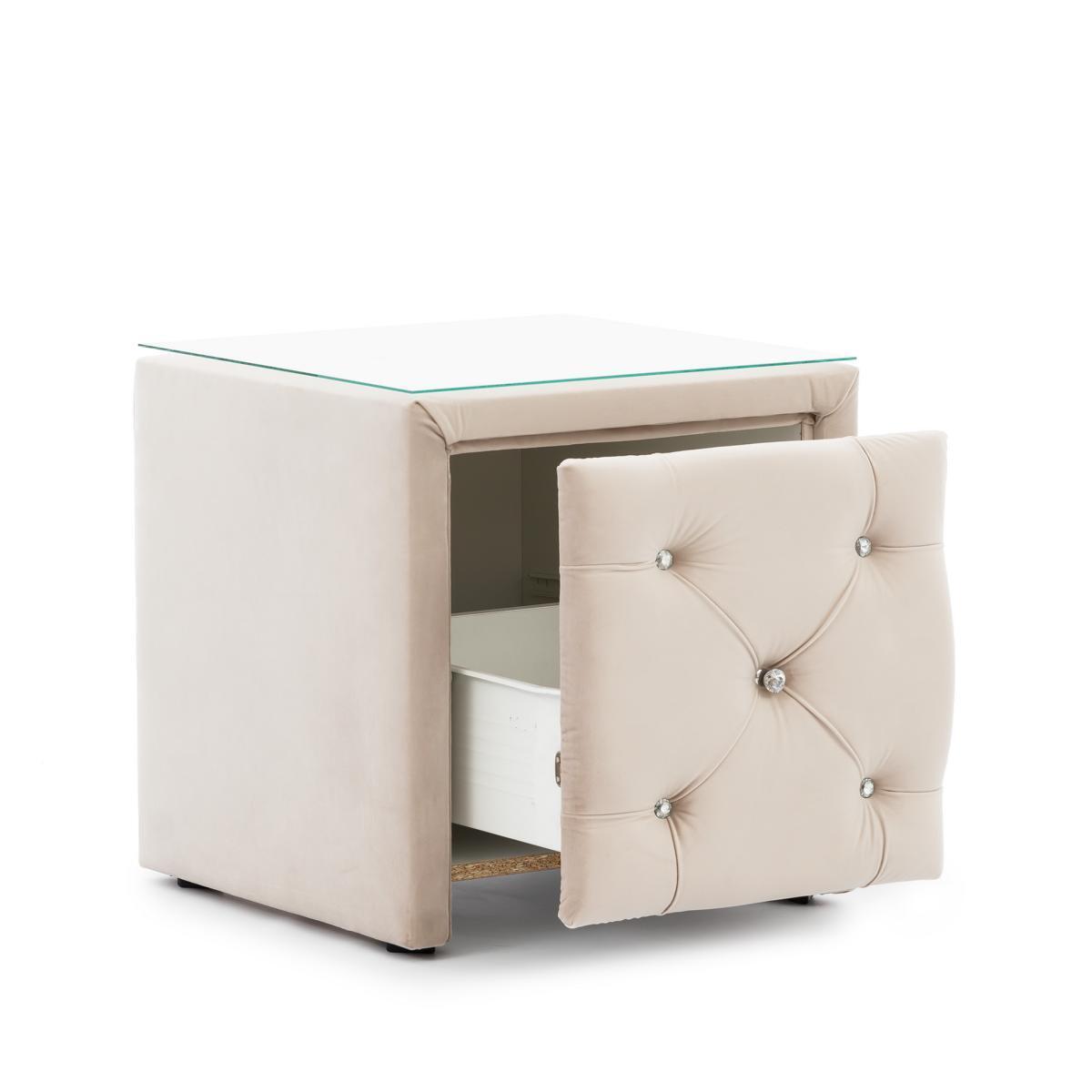 Beiges Chesterfield Schlafzimmer Garnitur Bett Hocker 2x Nachttische