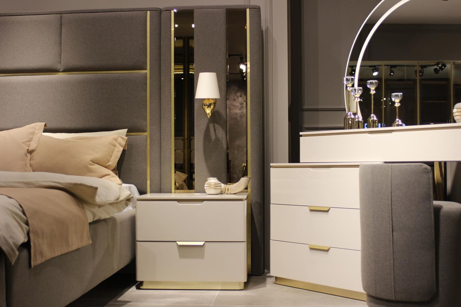 Erneuern Sie Ihr Schlafzimmer mit diesem stilvollen 3-teiligen Set bestehend aus einem Doppelbett und zwei Nachttischen! Das moderne Design und die hochwertige Verarbeitung machen dieses Ensemble zu einem echten Blickfang in Ihrem Zuhause. Das Bett bietet eine großzügige Liegefläche von ca. 180 x 200 cm und ist auch in einer kleineren Größe mit ca. 160 x 200 cm erhältlich. Die beiden Nachttische mit den Maßen ca. 61 x 50 x 51 cm bieten ausreichend Stauraum und passen perfekt zum Bett. Hergestellt aus Holz und Textil in der abgebildeten Farbe, bietet dieses Set Komfort und Stil zugleich. Gönnen Sie sich erholsame Nächte in Ihrem neuen Schlafzimmer mit XL Moebel!