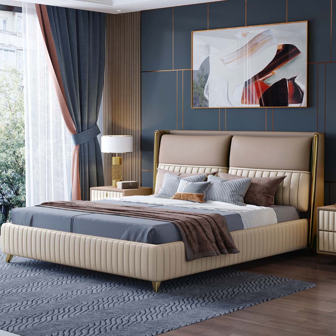 Erfrischen Sie Ihr Schlafzimmer mit unserem modernen Luxus-Schlafzimmer-Set! Dieses 3-teilige Set besteht aus einem Bett mit optionaler Liegefläche von ca. 180 x 200 cm, einem Bettmaß von ca. 226 x 206 x 127 cm und 2 passenden Nachttischen. Die Nachttische haben die Maße ca. 50 x 48 x 40 cm und bieten ausreichend Stauraum für Ihre Bedürfnisse. Das Design ist modern und stilvoll, ideal für ein luxuriöses Ambiente. Hergestellt aus hochwertigem Holz und Kunstleder in der Farbe wie abgebildet, sorgt dieses Set für eine elegante und zeitgemäße Atmosphäre in Ihrem Schlafzimmer. Entdecken Sie jetzt das Bett 3 tlg. Schlafzimmer Set Design Modern Luxus Schlafzimmer Nachttisch und bringen Sie Komfort und Eleganz in Ihr Zuhause. Optional sind andere Farben auf Anfrage erhältlich. Gönnen Sie sich dieses stilvolle Möbelstück und genießen Sie erholsame Nächte in Ihrem neuen Schlafzimmer!