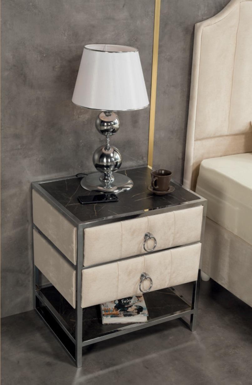 Schlafzimmer Set Beige Metall Bett Luxus 2x Nachttische Elegantes 3tlg