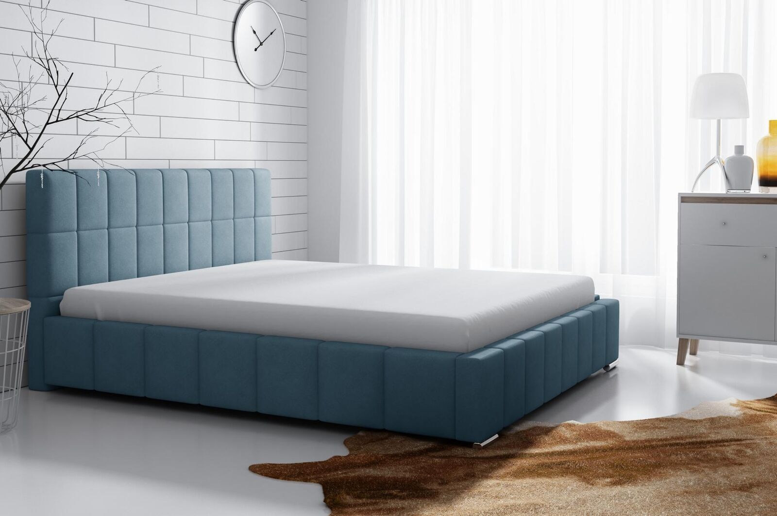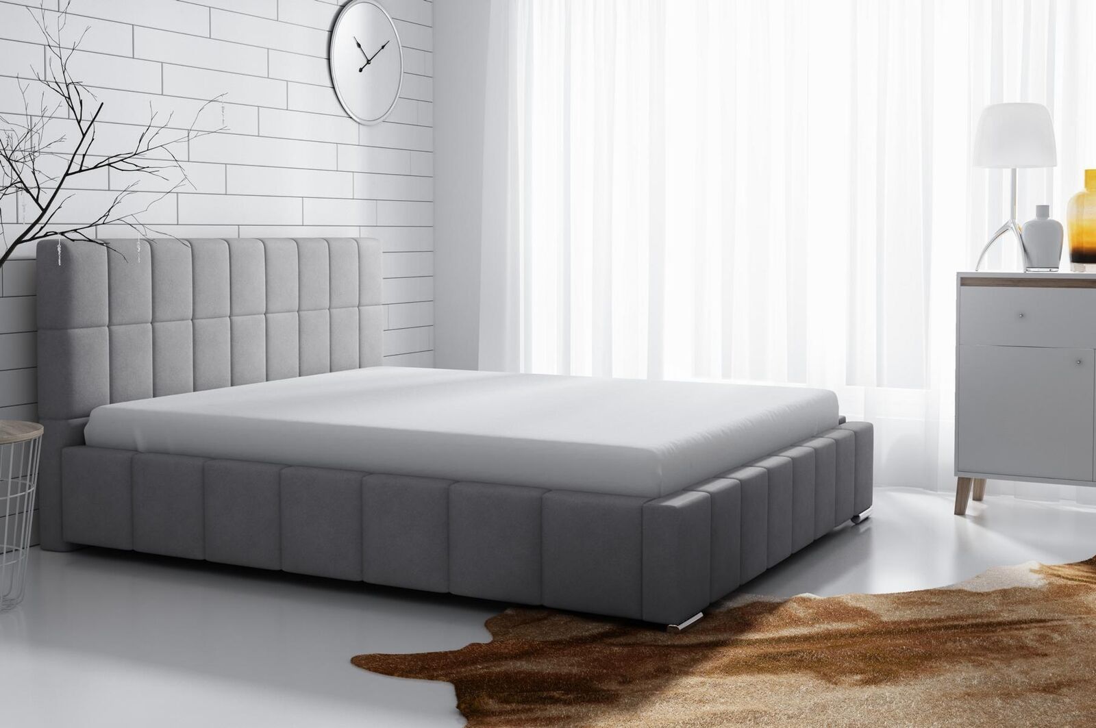 Entdecken Sie unseren modernen Bettrahmen "Design Doppel Hotel" für Ihr Schlafzimmer! Mit einer Liegefläche von ca. 200 x 200 cm bietet dieses stilvolle Bett viel Platz zum Entspannen. Der Metallrahmen ist mit 34 belastbaren und flexiblen Lamellen ausgestattet, während die gerade Kopfstütze für zusätzlichen Komfort sorgt. Sie haben die Möglichkeit, das Bett mit oder ohne Bettkasten zu wählen. Außerdem stehen verschiedene Liegeflächen-Maße von 120 x 200 cm bis 180 x 200 cm zur Auswahl. Die Farbe sowie das Material (Stoff oder Premium Kunstleder) können frei gewählt werden. Im Lieferumfang enthalten ist das Bett, optional können Sie gegen Aufpreis einen Bettkasten oder eine Matratze hinzufügen. Sichern Sie sich jetzt dieses hochwertige Polsterbett von XL Moebel für erholsame Nächte und ein modernes Schlafzimmerdesign!