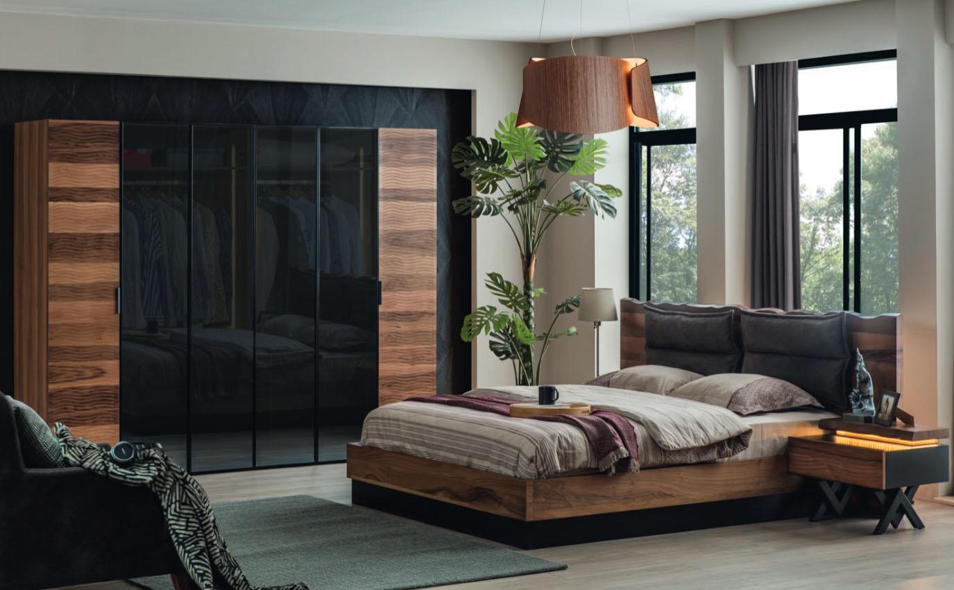 Brauner Kleiderschrank, Glastüren, Stilvolle Schlafzimmermöbel