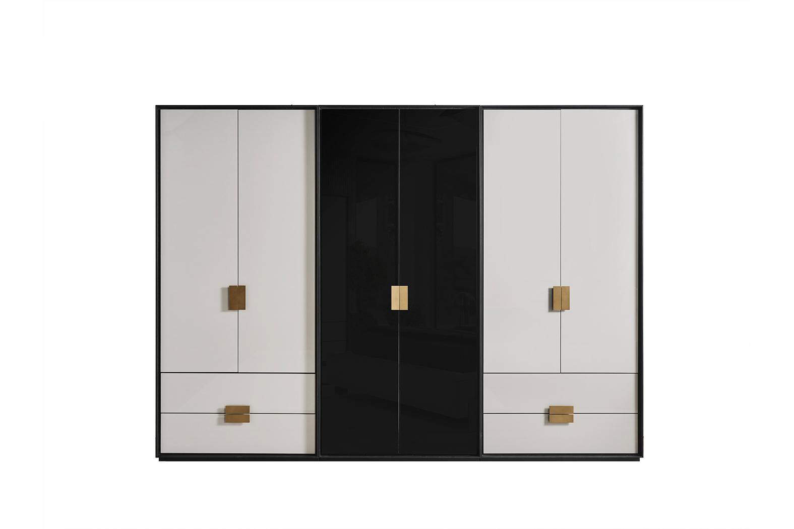 Schwarz-Weißer Schlafzimmer Kleiderschrank Moderner 6-Türiger Schrank