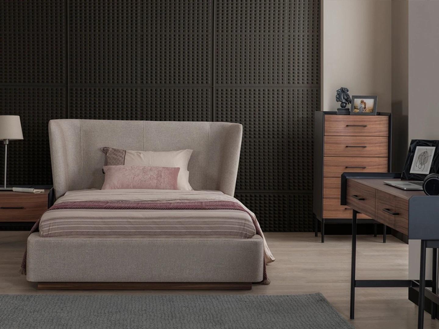 Entdecken Sie das Design Komplett 4tlg Schlafzimmer-Set mit Bett, Nachttisch, Kommode und Schreibtisch von XL Moebel! Dieses moderne Ensemble besticht durch seine elegante Gestaltung und hochwertige Verarbeitung. Das Bett misst ca. 167 x 230 x 103 cm und bietet eine Liegefläche von ca. 120 x 200 cm. Der Nachttisch ist ca. 57 x 44 x 45 cm groß, die Kommode ca. 57 x 44 x 110 cm und der Schreibtisch ca. 120 x 53 x 80 cm. Das Set ist wie abgebildet in einer ansprechenden Farbe gehalten und besteht aus hochwertigem Holz. Bringen Sie mit diesem Schlafzimmer-Ensemble Stil und Komfort in Ihr Zuhause! Worauf warten Sie noch? Ergänzen Sie Ihre Einrichtung jetzt mit XL Moebel!
