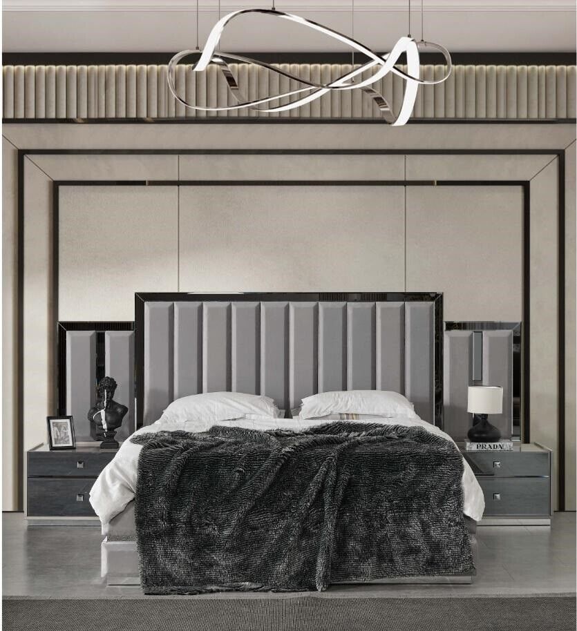 Komplette Schlafzimmer Doppelbett Bett Nachttische 4tlg Grau Schrank