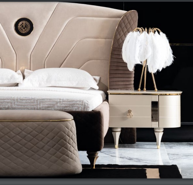 Luxus Set Schlafzimmer Bett Nachttisch Kommode Hocker Gruppe Garnitur Neu 5tlg.