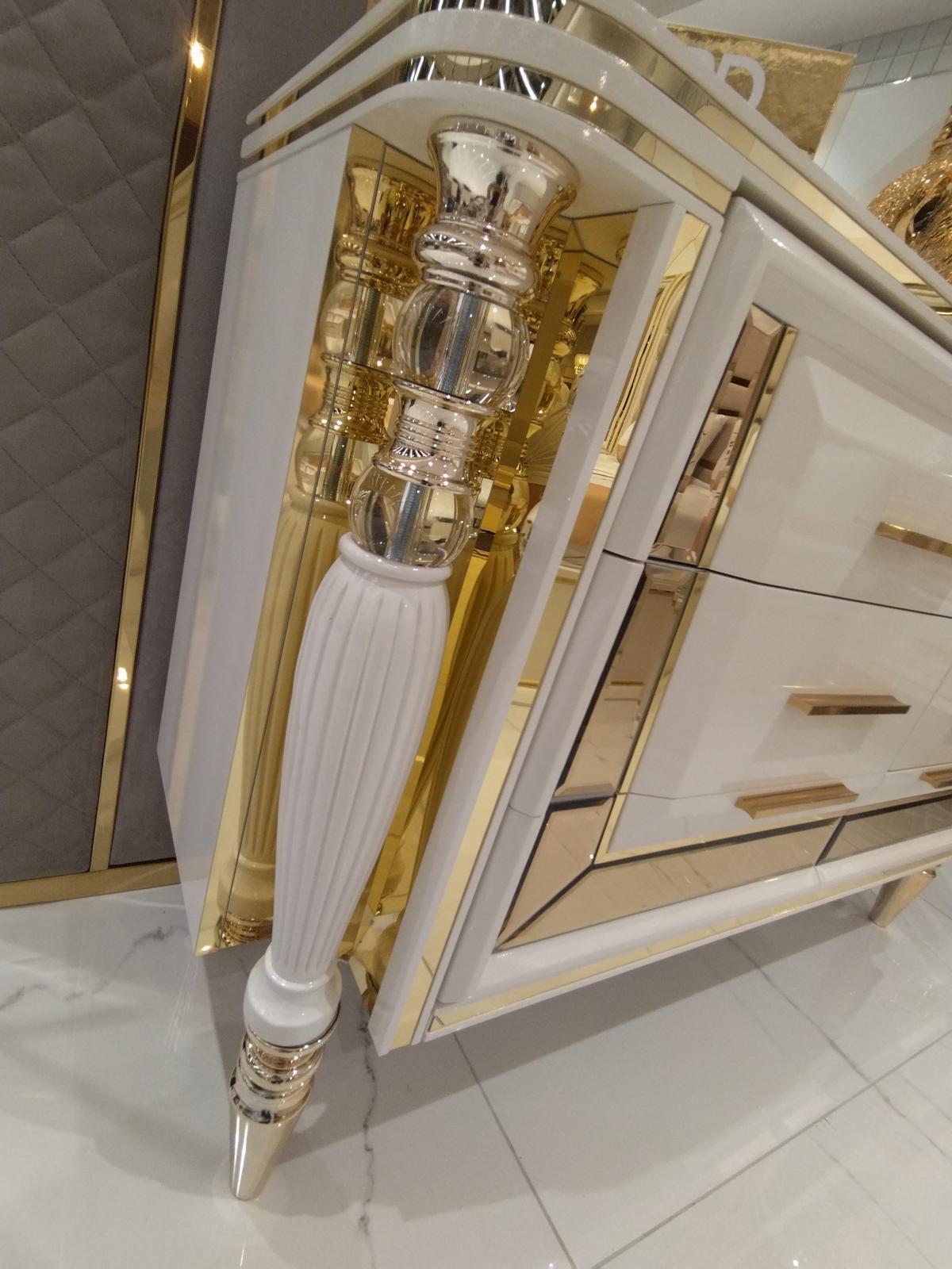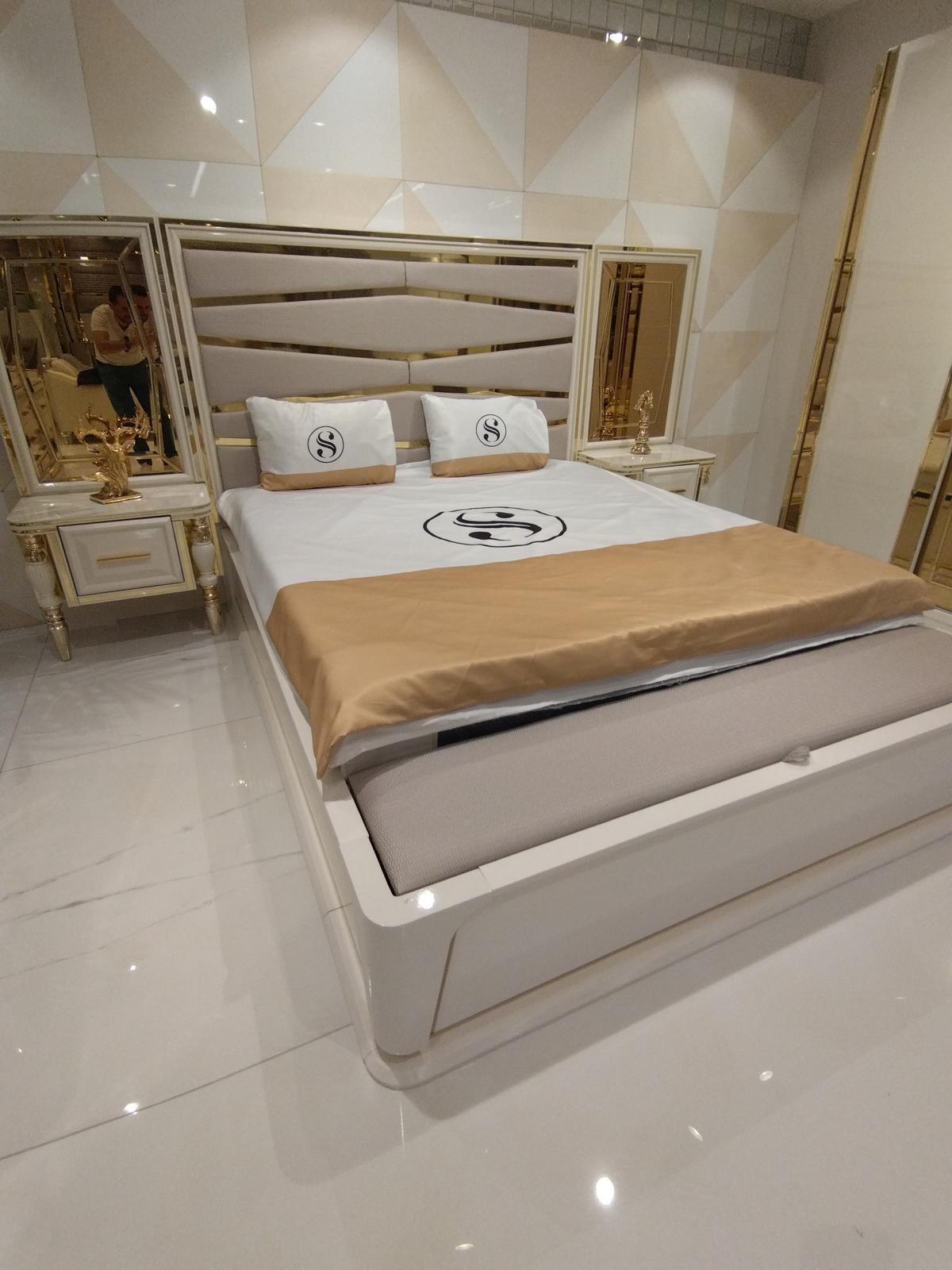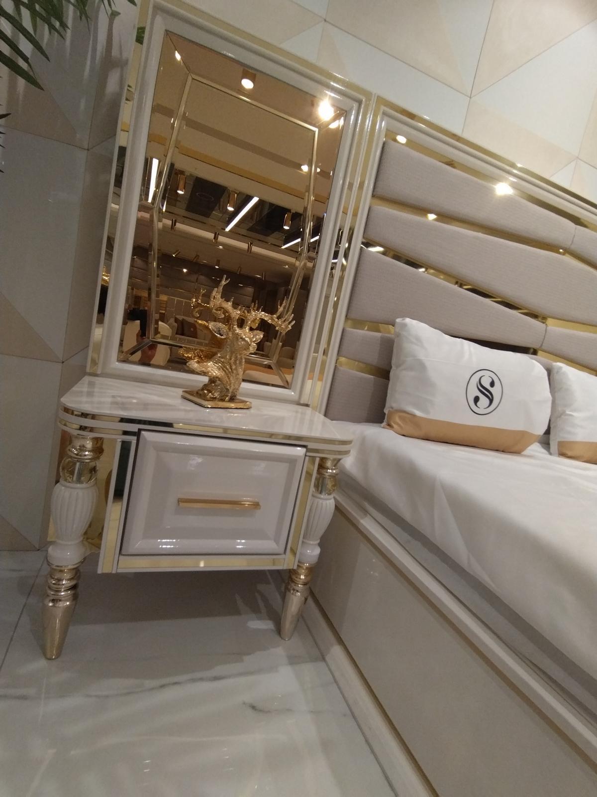 Modern Schlafzimmer Set Bett 2x Nachttische Kommode mit Spiegel Schrank Neu