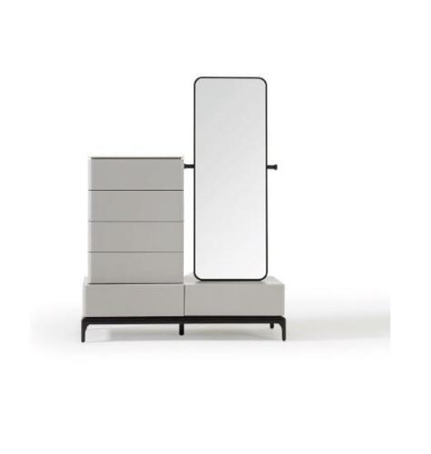 Modernes schwarz-weißes Schlafzimmer-Set (Bett, zwei Nachttische, Kommode mit Spiegel)