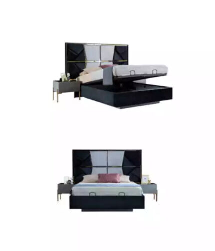 Perfektes Schlafzimmermöbel-Set in Grautönen mit goldenen Intarsien