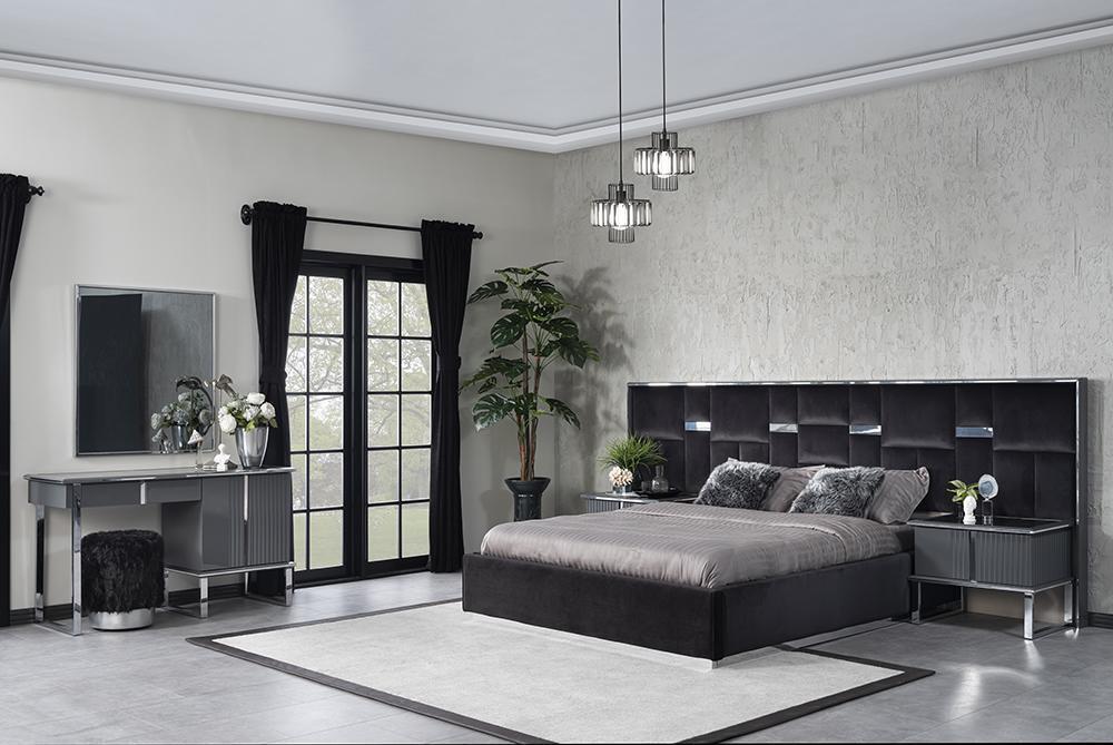 Schlafzimmer Einrichtung, Design Bett, 2 Nachttische, Luxus Schminktisch