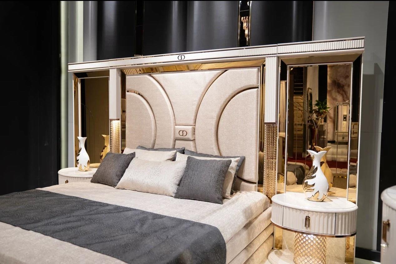 Schlafzimmer Set Bett 2x Nachttische Hocker Luxus neu 5tlg Design Holz