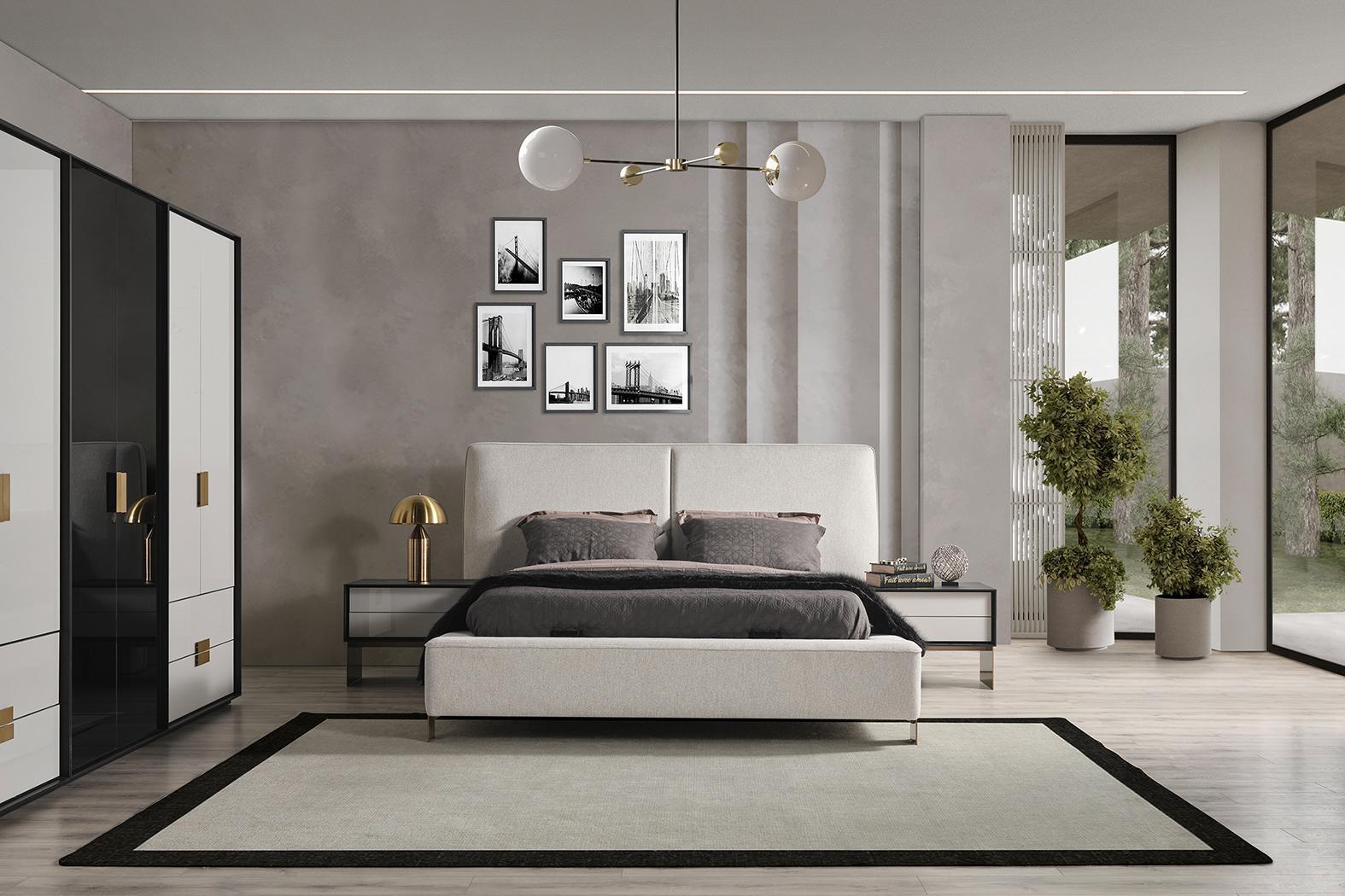 Schlafzimmer Set Bett 2x Nachttische Kleiderschrank Luxus neu 4tlg.Holz