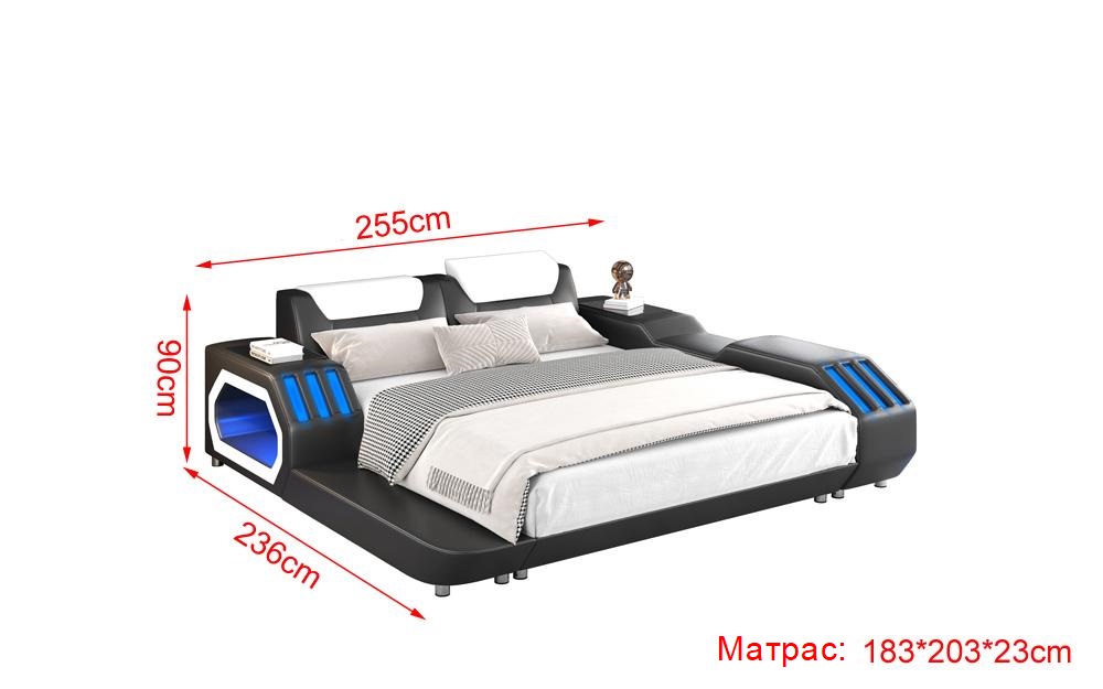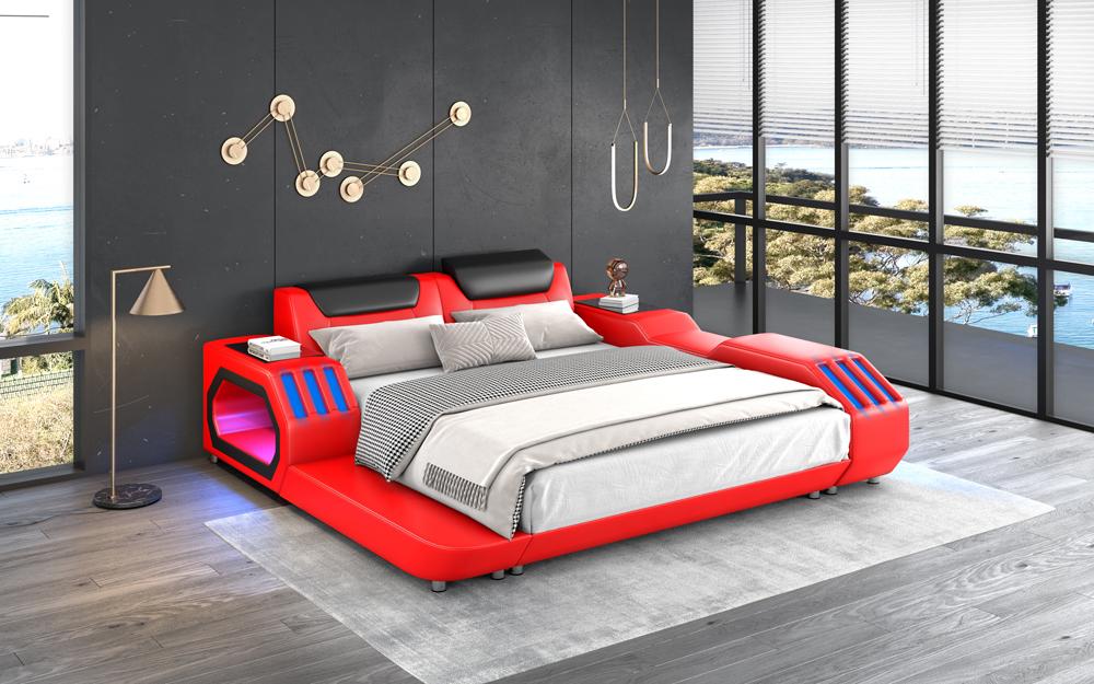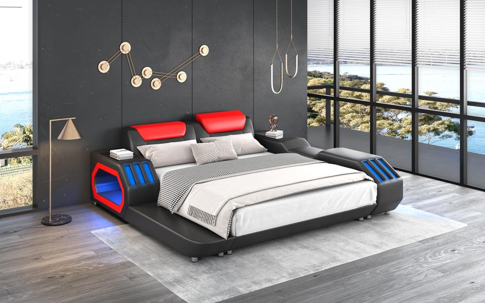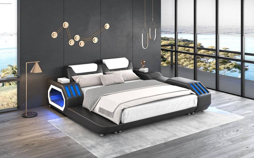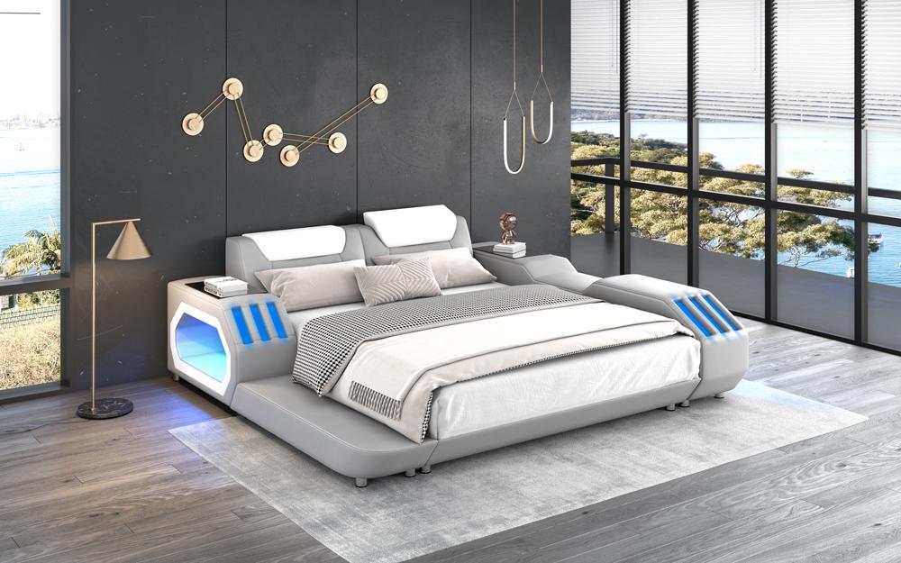Bett, Doppelbett, Schlafzimmermöbel, beleuchtetes Bett