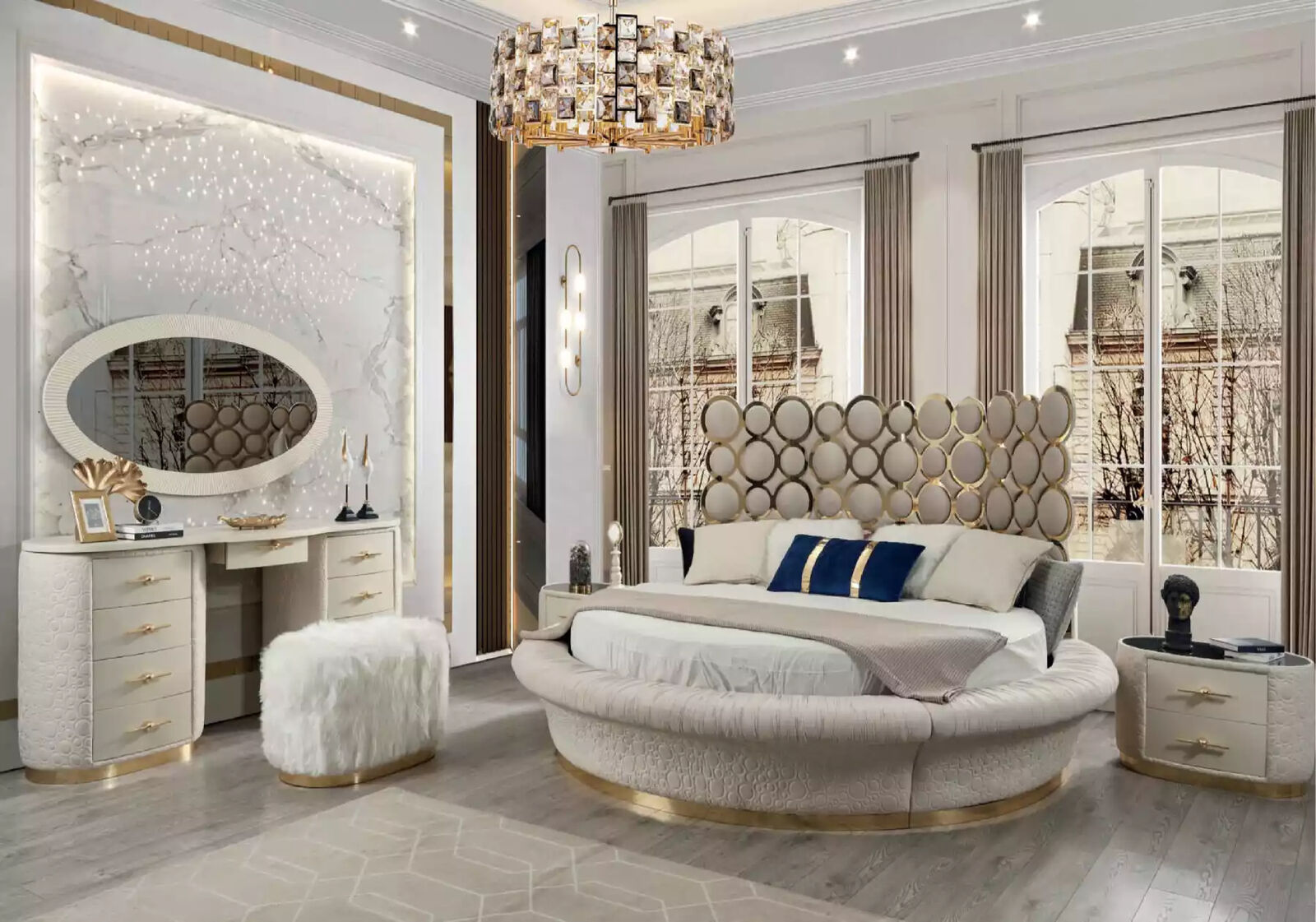 Schlafzimmermöbel, moderne Möbel, Elegantes weißes Bett-Set