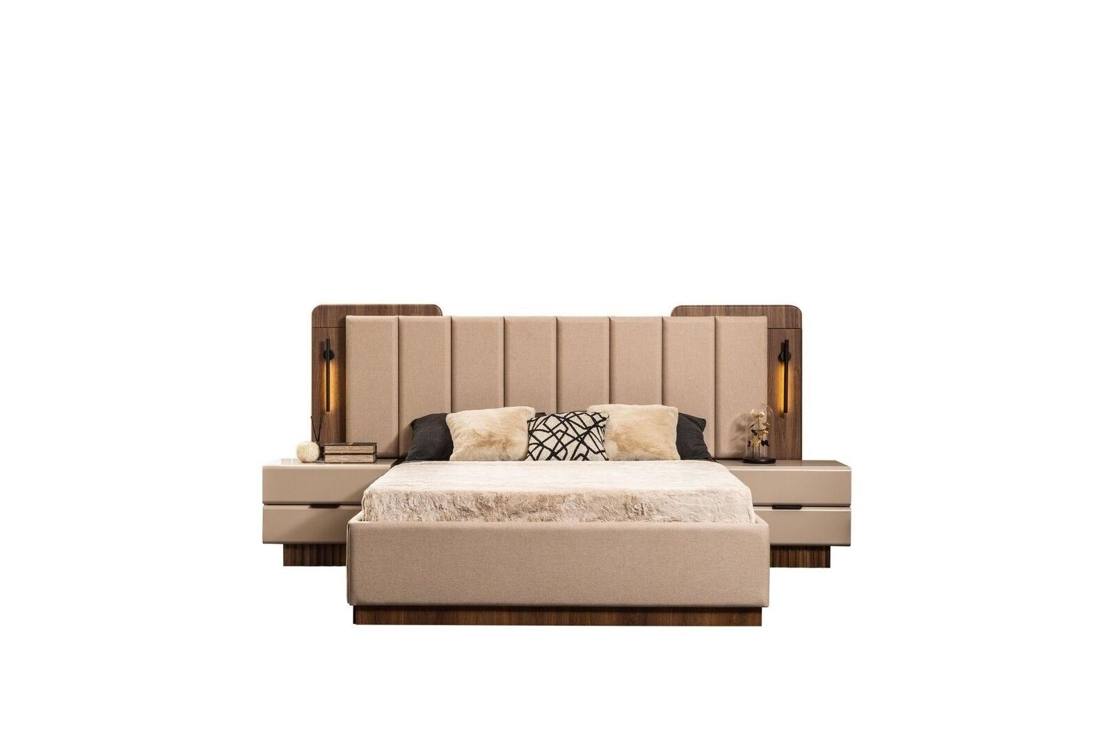 Schlafzimmer Garnitur Doppelbett Nachttische Beige Stoff 4tlg Schmink