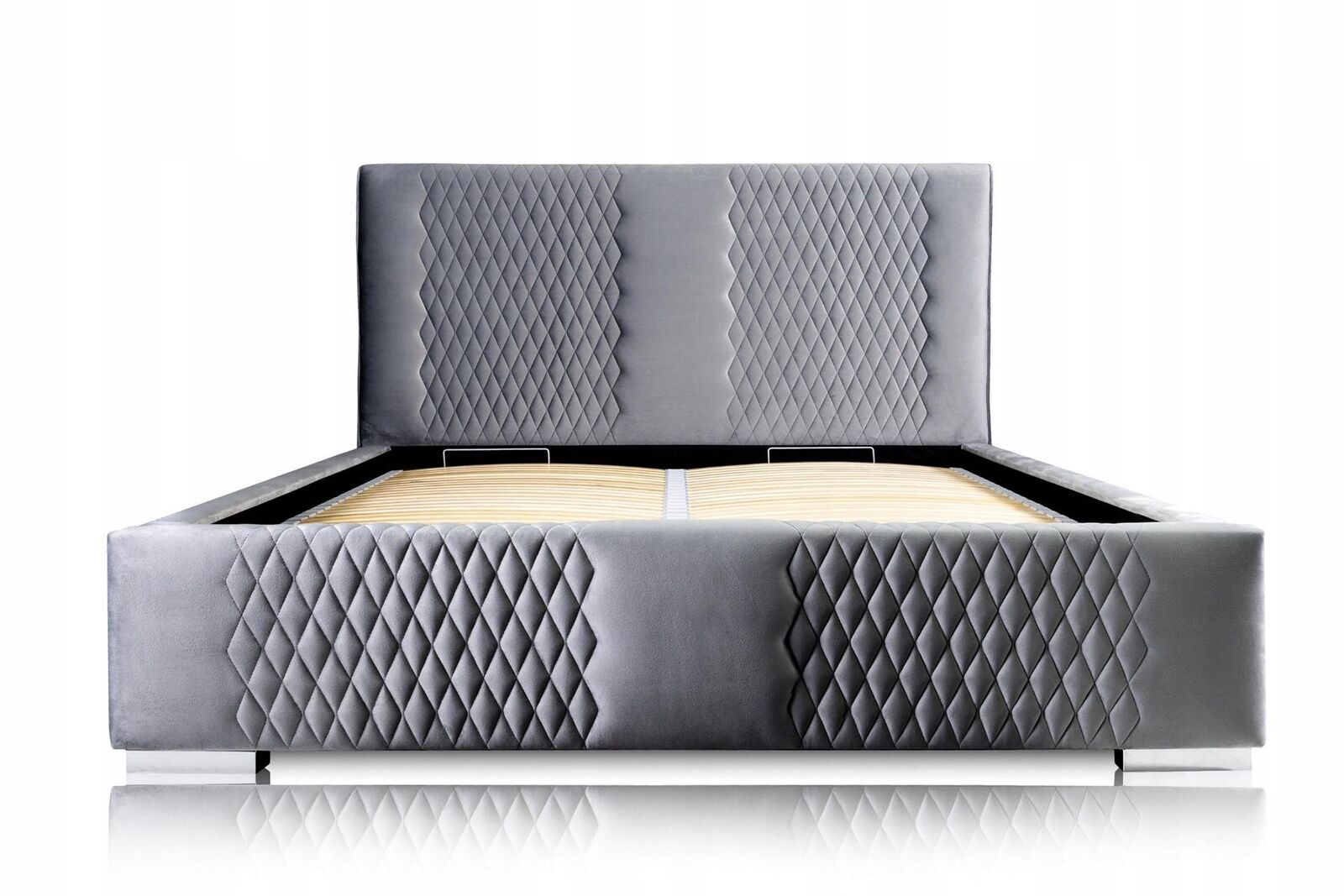 Bett Grau Doppelbett Modern Elegantes Bett Polster Stoff Schlafzimmer Modern Neu