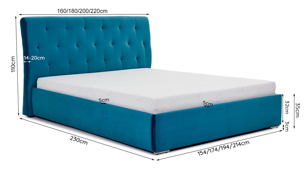 Maße 140x200, 160x200, 180x200 oder 200x200cm