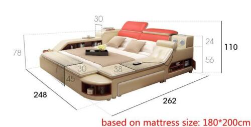 Leder Bett Betten Polster Doppel Multifunktion 180x200 Leder Bettgestell