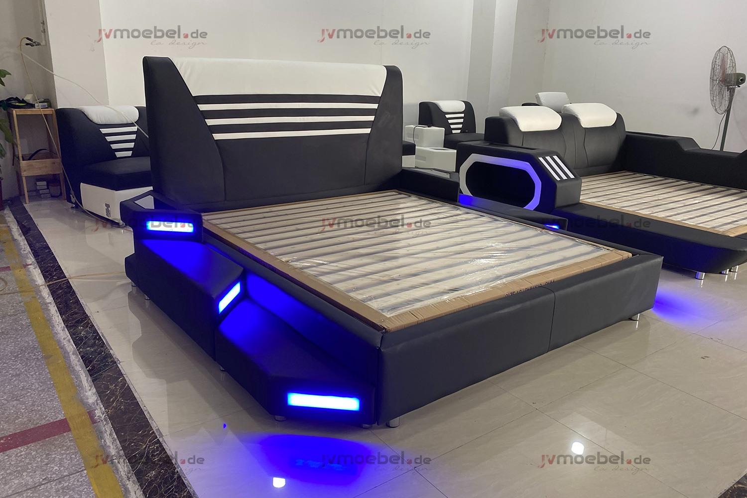 Betten Stilvolle Designer Doppelbett Möbel Polster Leder Weiß 180x200 NEU