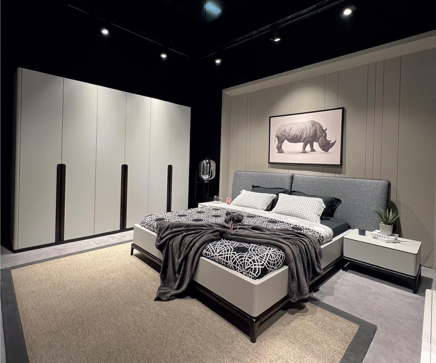 Bett Polster Design Luxus Doppel Hotel Betten Holz Möbel Hellgrau Loft