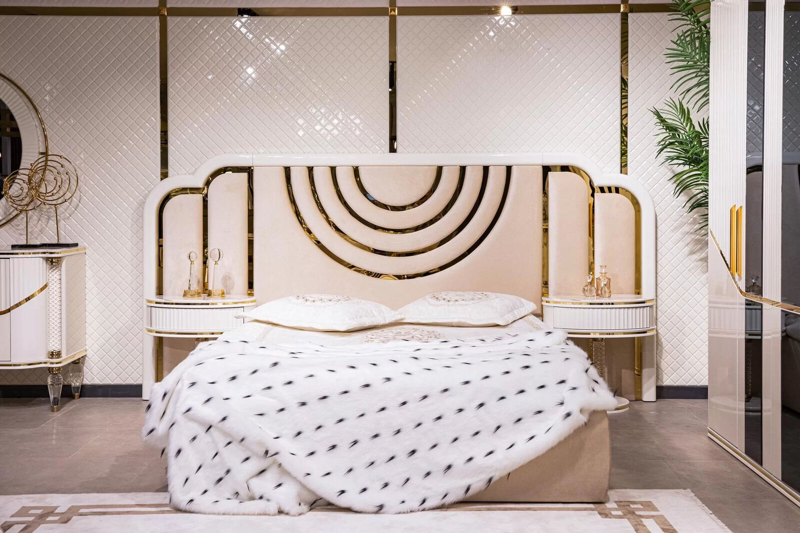 Schlafzimmer Set Luxus Bett 2x Nachttisch Kleiderschrank Kommode mit Spegel 5tlg