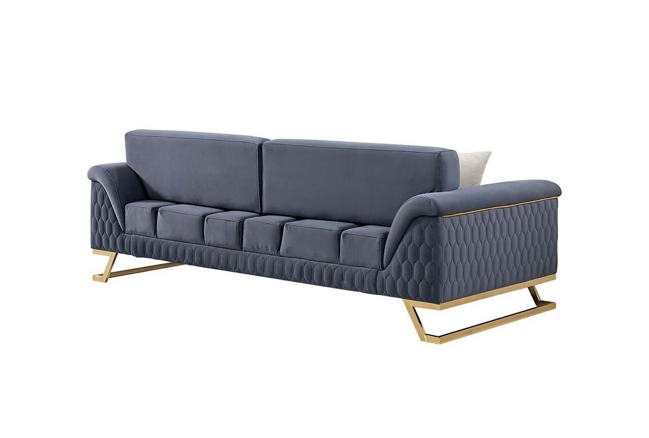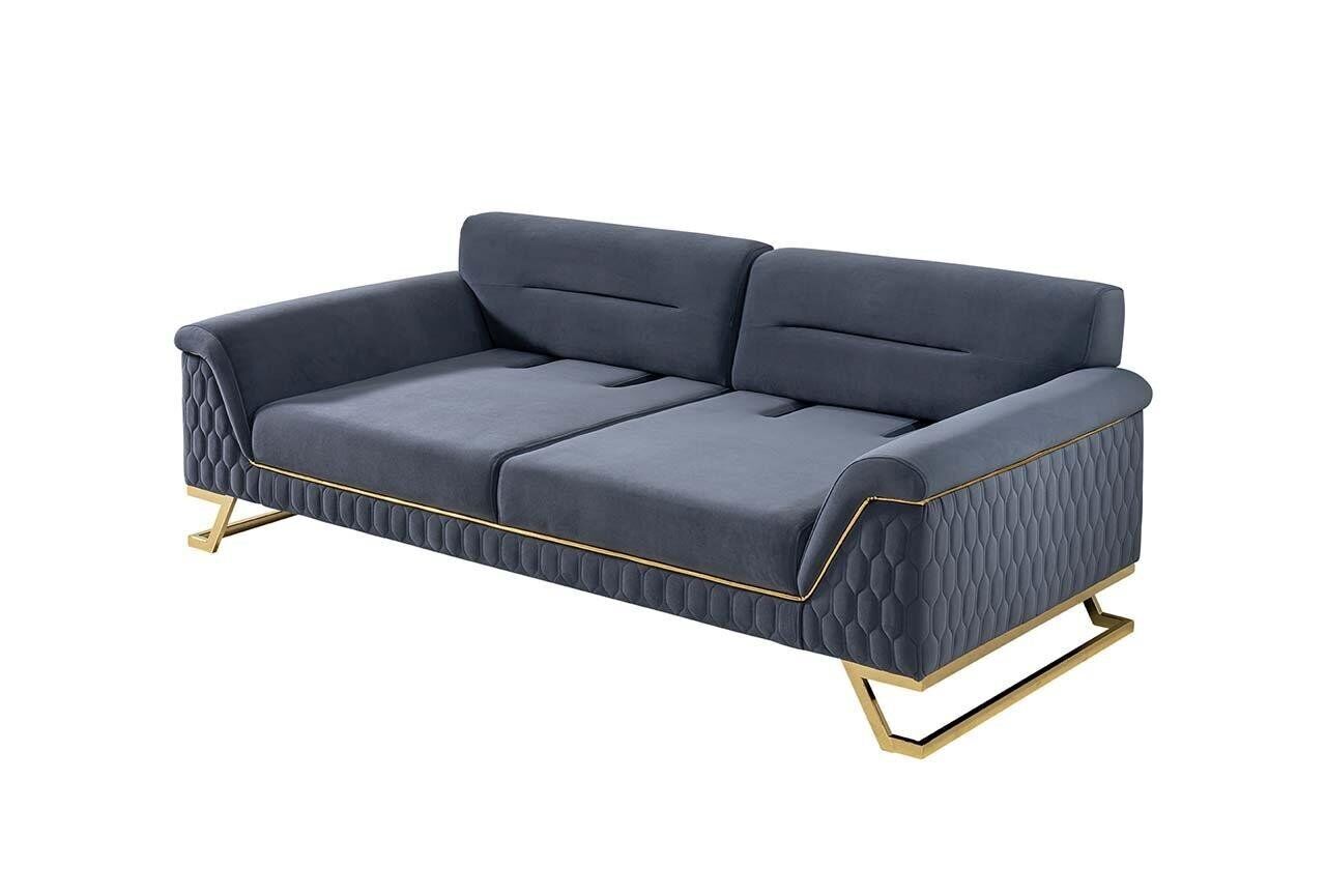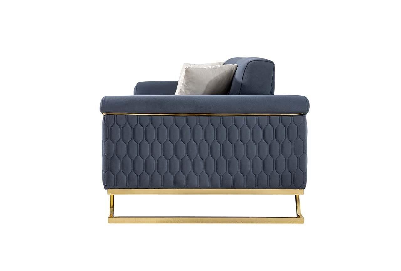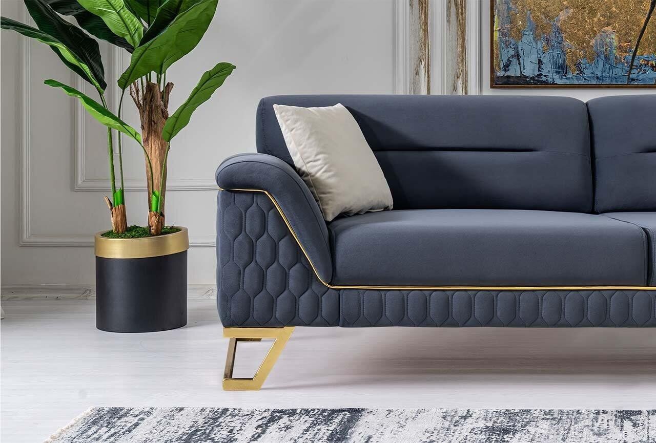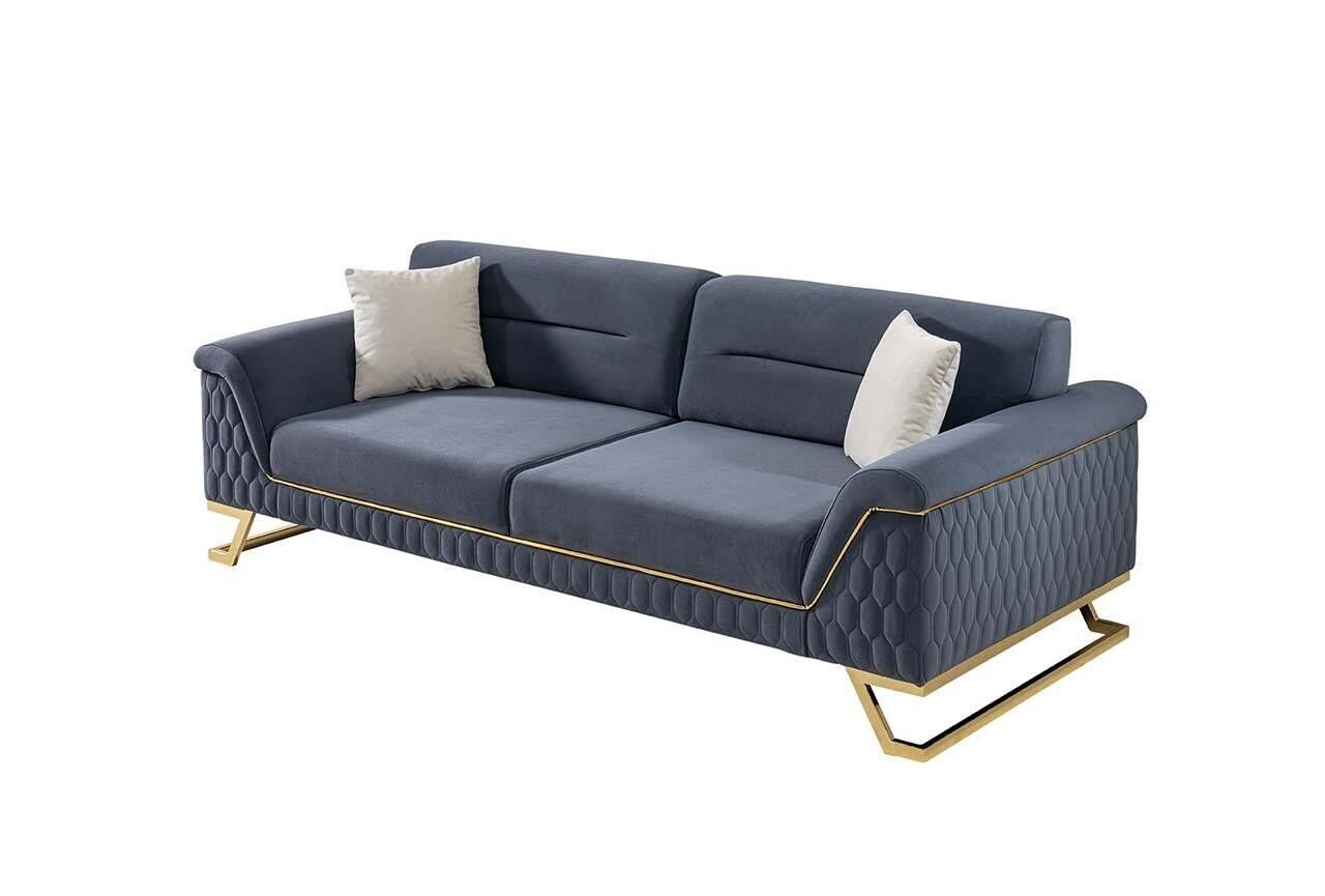 Verschönern Sie Ihr Wohnzimmer mit unserer luxuriösen Designer-Ecksofa-Garnitur! Dieses moderne Möbelstück wird Ihre Gäste beeindrucken und Ihrem Zuhause eine stilvolle Note verleihen. Die blaue Wohnzimmer Sitzgarnitur besteht aus einem geräumigen 3-Sitzer Sofa und einem eleganten Sessel, die perfekt aufeinander abgestimmt sind. Hergestellt aus hochwertigem Holz, Textil und Edelstahl, garantiert diese Garnitur Langlebigkeit und Komfort. Die Maße des Sofas betragen ca. 230 x 100 x 85 cm und des Sessels ca. 85 x 85 x 90 cm. Gönnen Sie sich Luxus und Eleganz - bestellen Sie jetzt Ihre Wohnzimmer Sitzgarnitur!