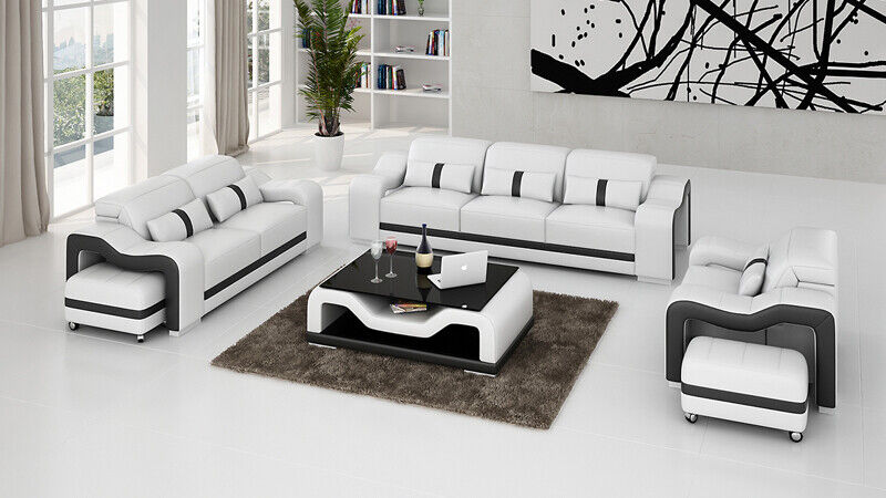Verleihen Sie Ihrem Wohnzimmer mit unserer Designer Schwarze Sofagarnitur einen Hauch von Luxus! Dieses exklusive Set besteht aus einem geräumigen 3-Sitzer und zwei komfortablen 2-Sitzern, die jeden Raum stilvoll ergänzen. Hergestellt aus hochwertigem Premium Lederfaserstoff (70% Leder / 30% Polyester) bieten wir Ihnen die Möglichkeit, die Farbe der Couch nach Ihren Wünschen auszuwählen. Zusätzlich können Sie zwischen verschiedenen Materialoptionen wählen, darunter Premium Echtleder oder Premium Textilstoff gegen einen Aufpreis. Mit Maßen von ca. 226 x 82 x 97 cm für den 3-Sitzer und ca. 166 x 80 x 97 cm für die 2-Sitzer, bietet dieses Sofa Set nicht nur Stil, sondern auch Komfort mit einer Sitzhöhe von ca. 42 cm und einer Sitztiefe von ca. 56 cm. Bringen Sie mit unserer Luxuriösen Couchen Leder Set Eleganz in Ihr Zuhause - gönnen Sie sich diesen zeitlosen Klassiker und genießen Sie entspannte Stunden in exquisitem Design.