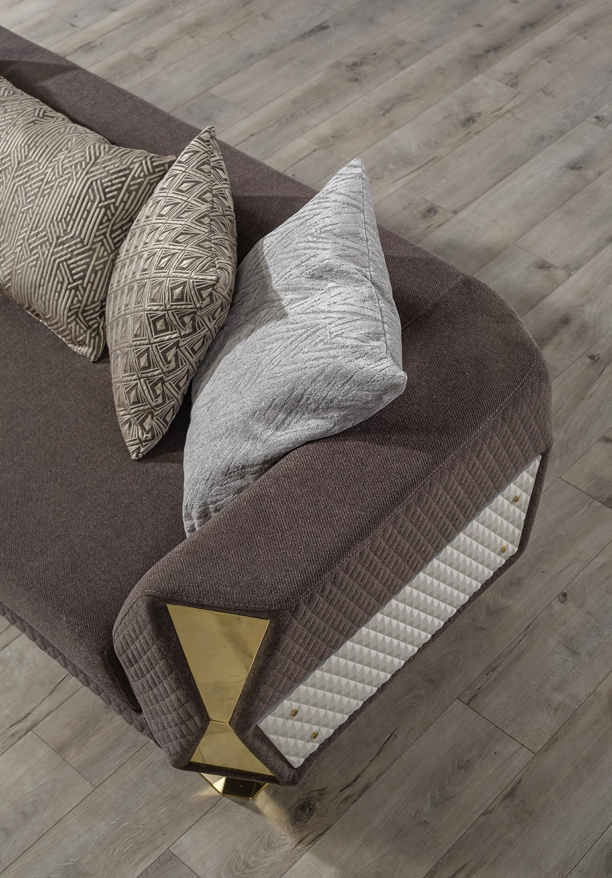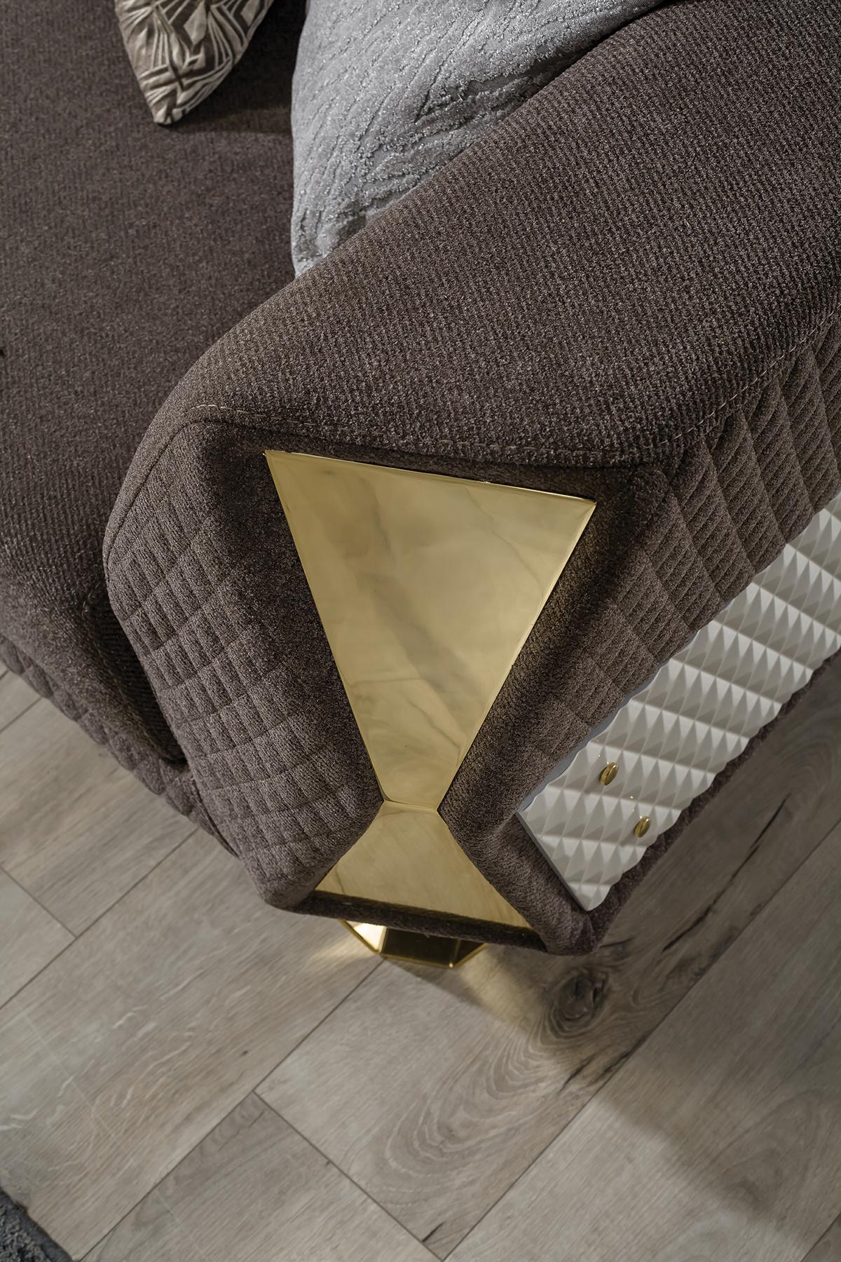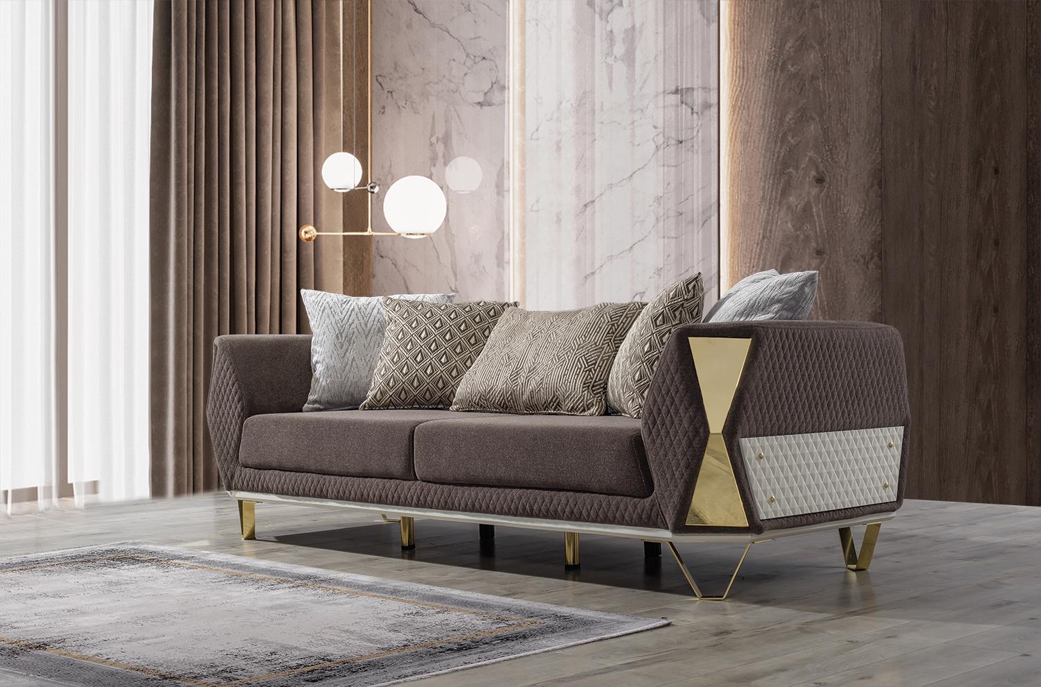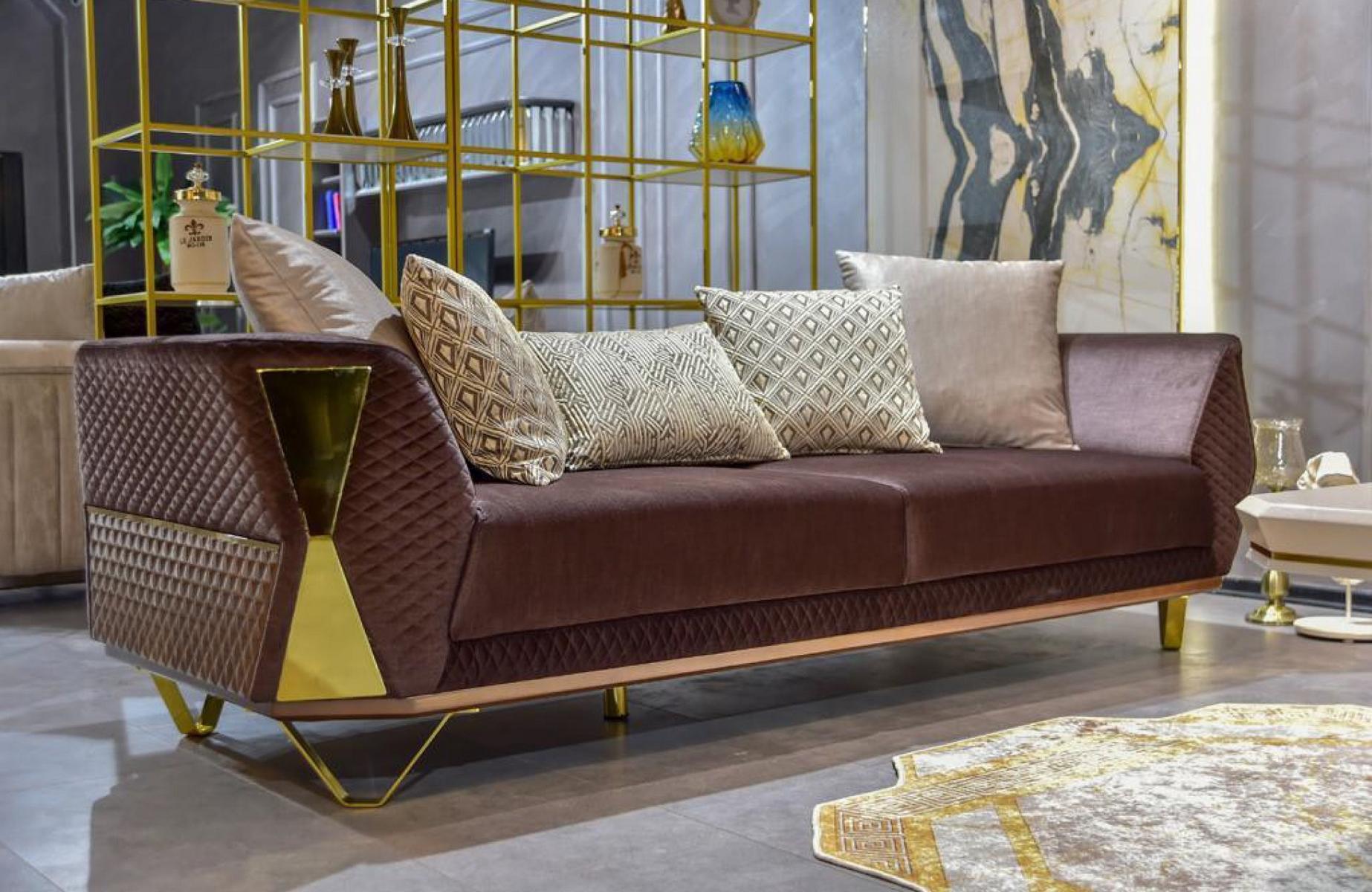 Entdecken Sie die moderne Garnitur Sofagarnitur 3+3+1 Sitzer Sofa Sessel Sofas in Braun von XL Möbel! Diese stilvolle Sofagarnitur mit Metallrahmen und Textilbezug bietet höchsten Komfort und ein zeitgemäßes Design für Ihr Zuhause. Mit zwei geräumigen 3-Sitzer-Sofas und einem gemütlichen Sessel können Sie Ihre Gäste in einem eleganten Ambiente empfangen. Die Maße der Möbelstücke sorgen für ausreichend Platz zum Entspannen und Wohlfühlen. Nutzen Sie diese hochwertige Sofagarnitur, um Ihrem Wohnzimmer einen neuen Look zu verleihen. Bestellen Sie jetzt und bringen Sie modernen Charme in Ihre Wohnräume!
