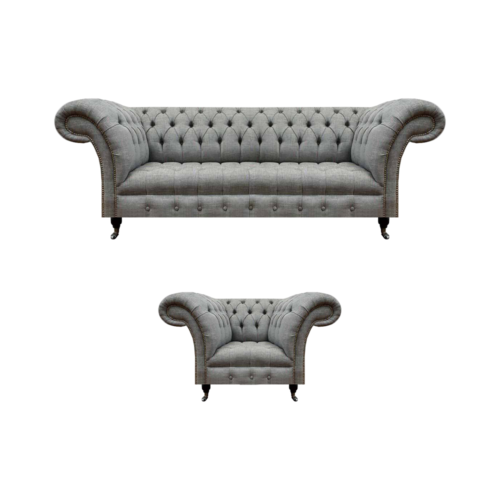 Grau Dreisitzer Couch Sofa Wohnzimmer Sessel Sitz Chesterfield Polstermöbel