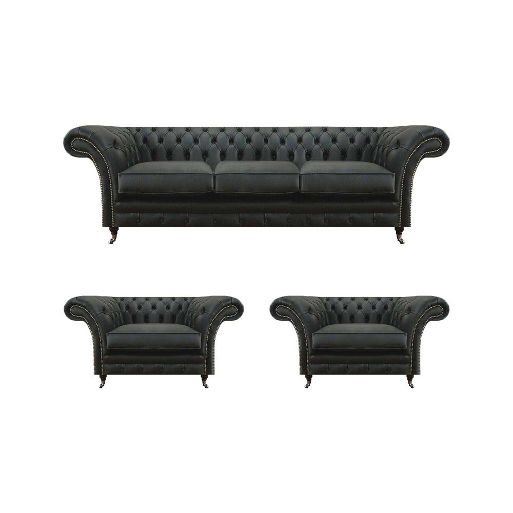 Luxus Schwarz Wohnzimmer Set 3tlg Chesterfield 2x Sessel Dreisitzer Sofa