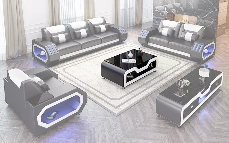 Moderne Ledersofagarnitur Couch Polster Sofa Garnituren Ledersofa Sideboard Neu
