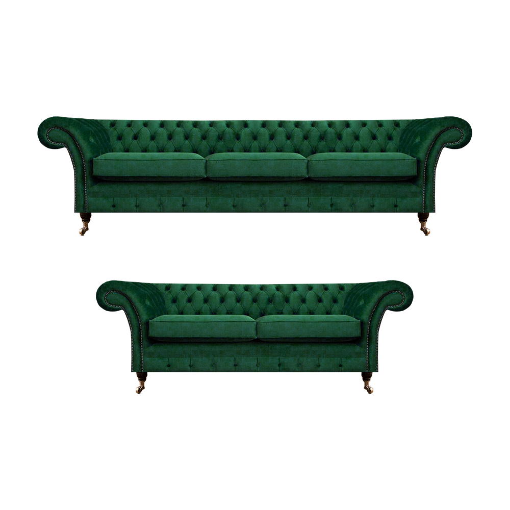 Entdecken Sie unsere elegante Sofagarnitur mit Chesterfield-Design für Ihr Wohnzimmer! Diese 2-teilige Sofagarnitur besteht aus einem geräumigen 3-Sitzer-Sofa und einem gemütlichen 2-Sitzer-Sofa, die beide in verschiedenen Farben erhältlich sind. Sie haben die Möglichkeit, die Maße und das Material individuell anzupassen - ob Premium Kunstleder, echtes Leder, samtweicher Stoff oder Fleckenabweisender Magic Home Stoff. Die Sofas haben eine angenehme Sitzhöhe von ca. 42 cm und eine Sitztiefe von ca. 52 cm, für maximalen Komfort. Optional können Sie die Garnitur mit einem 4-Sitzer oder einem 1-Sitzer erweitern, sowie eine Bettfunktion mit Matratze hinzufügen. Das Innengestell besteht aus echtem Holz mit Federkern für Stabilität und Langlebigkeit. Verleihen Sie Ihrem Zuhause mit diesen exquisiten Sofas einen Hauch von Luxus! Wählen Sie Ihre Lieblingsfarbe und Material für ein individuelles Design. Lassen Sie sich von der Qualität unserer handgefertigten Sofas begeistern - Jetzt anfragen und Ihre persönliche Traumcouch kreieren!