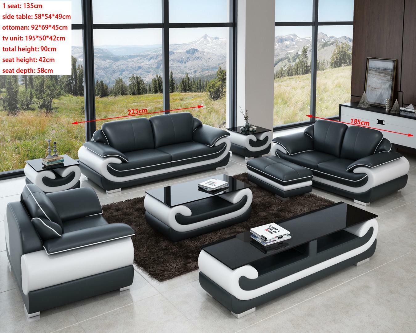 Sofagarnitur 3+2+1 Sitzer 2x Beistelltisch Sideboard Hocker 7tlg.Wohnzimmer Set