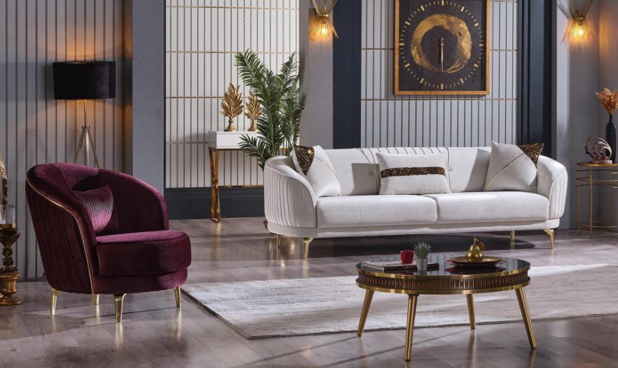 Sofagarnitur Edelstahlfüße Dreisitzer + Sessel Moderne Wohnzimmer Couch