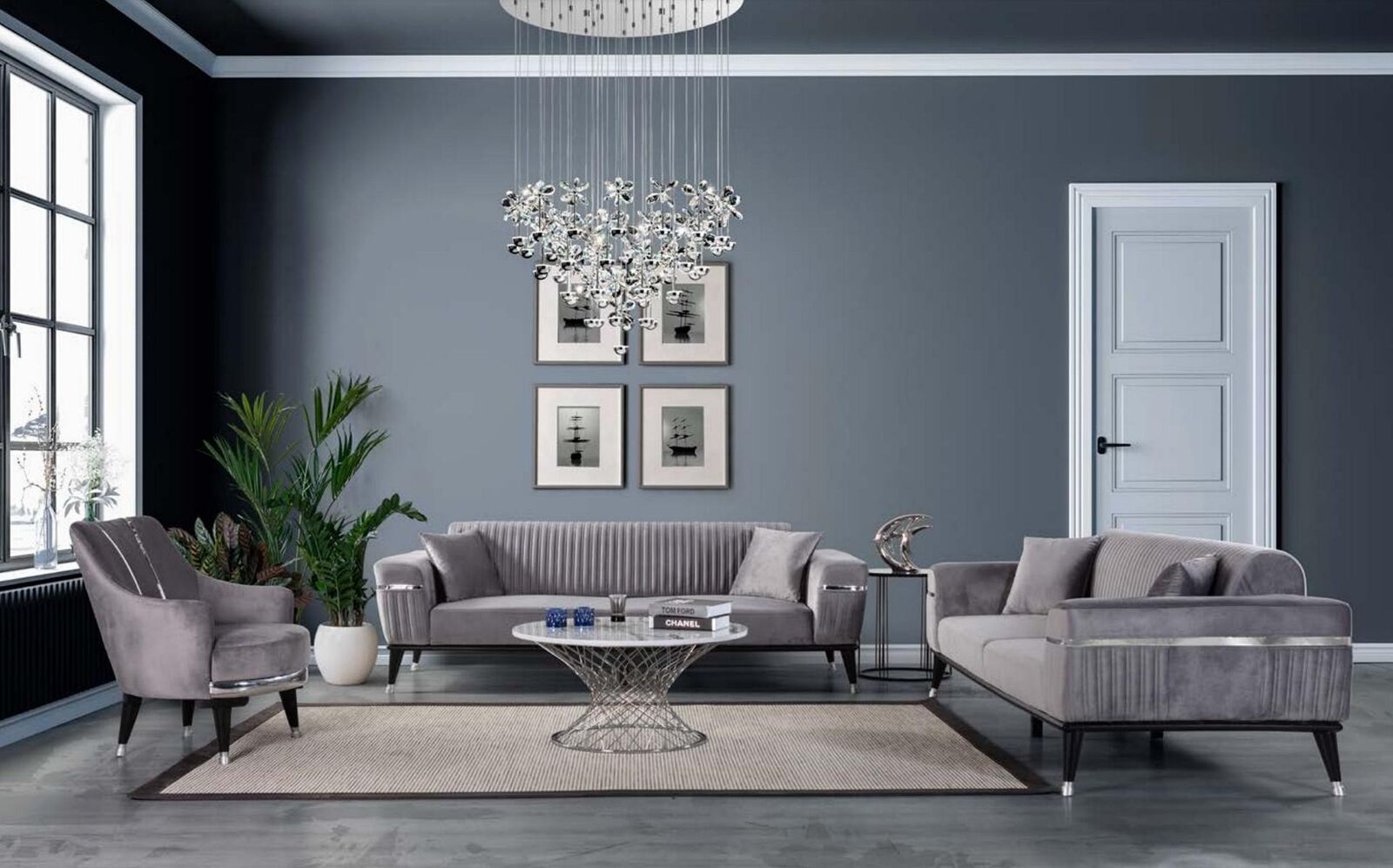 Entspannen Sie in Stil und Komfort mit unserer Sofagarnitur 3+3+1 Sitzer in Grau! Diese hochwertige Sofagarnitur umfasst zwei 3-Sitzer-Sofas und einen Sessel, alle mit einem eleganten Stoffbezug und robusten Holzbeinen. Die Maße der Sofas betragen ca. 234 x 97 x 80 cm, während der Sessel ca. 80 x 80 x 98 cm misst. Die zeitlose graue Farbe passt zu jedem Einrichtungsstil und verleiht Ihrem Wohnzimmer eine stilvolle Note. Wenn Grau nicht Ihre Farbe ist, fragen Sie einfach nach unseren anderen verfügbaren Farboptionen, darunter Ocker, Blau, Grün, Braun, Rosa und viele mehr. Genießen Sie Gemütlichkeit und Eleganz mit unserer Sofagarnitur 3+3+1!
