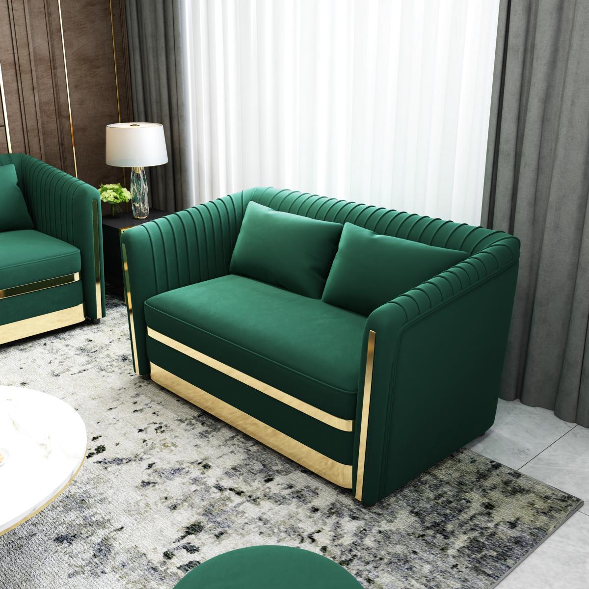 Grüne Edelstahl Sofagarnitur 3+2 Polster Wohnzimmer Couchen