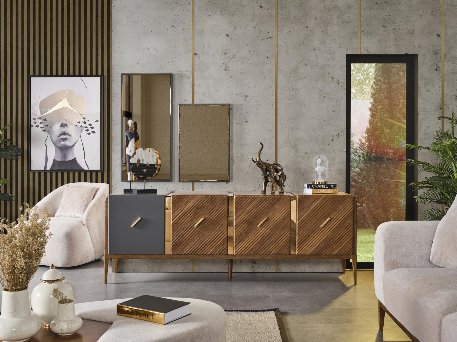 Anrichte 2x Spiegel Wohnzimmer Gruppe Holz Design Set 3tlg neu braun