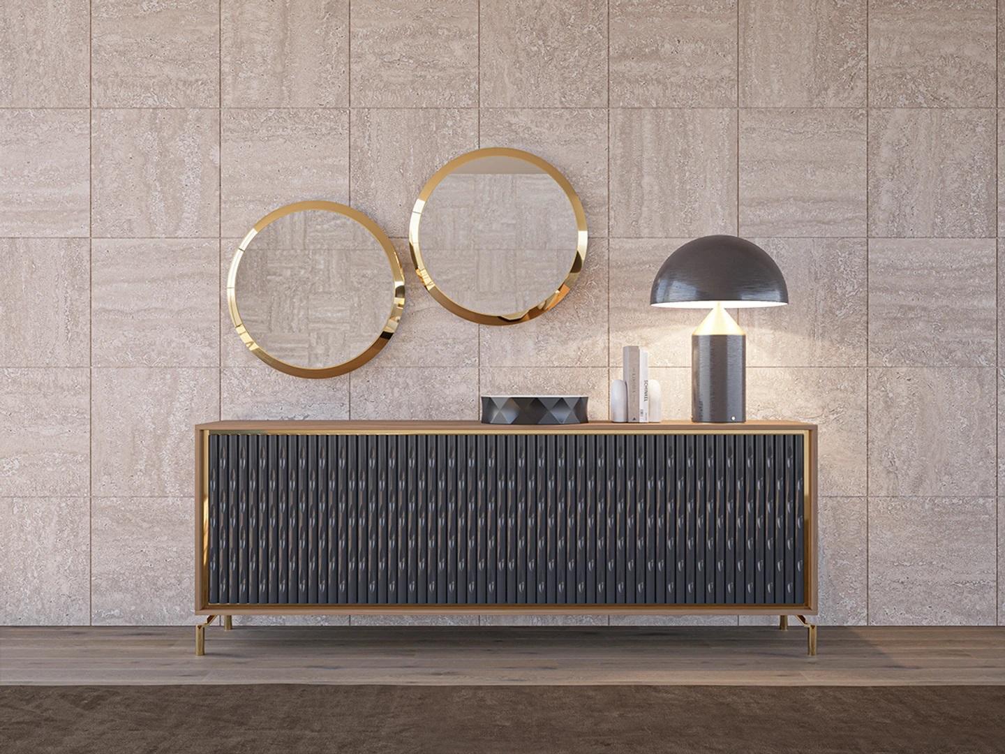 Esszimmer Modern Essgruppe Sideboard mit 2x Spiegel Luxus Holz Möbel