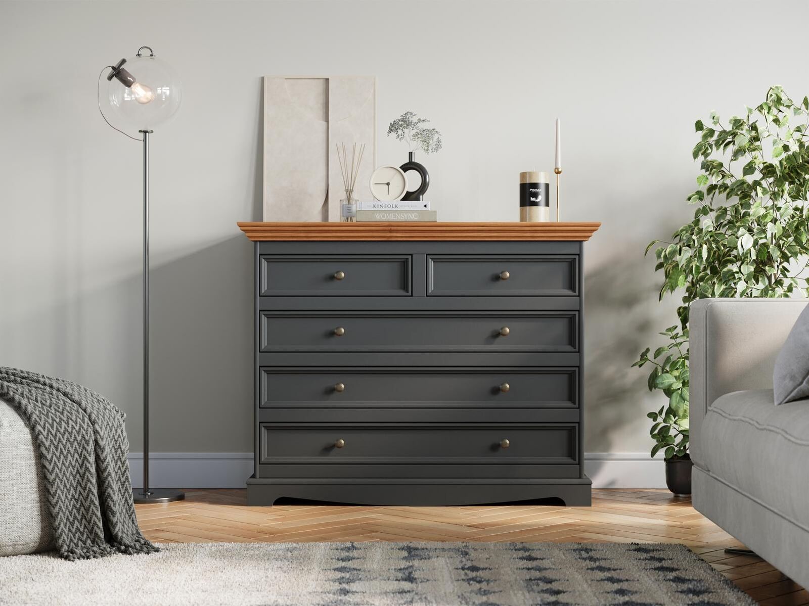 Entdecken Sie unsere hochwertige Kommode mit 5 Schubladen von XL Moebel! Dieser Hochschrank ist ein echter Blickfang und bietet nicht nur viel Stauraum, sondern auch ein ansprechendes Design für Ihr Zuhause. Hergestellt aus Holz und mit einem echten Holz-Innengestell, überzeugt diese Kommode nicht nur durch ihre Funktionalität, sondern auch durch ihre Qualität. Mit Maßen von ca. 112 x 45 x 88 cm passt sie perfekt in Ihr Wohnzimmer, Schlafzimmer oder Flur. Bestellen Sie jetzt und verleihen Sie Ihrem Zuhause einen Hauch von Eleganz mit unserer Kommode!